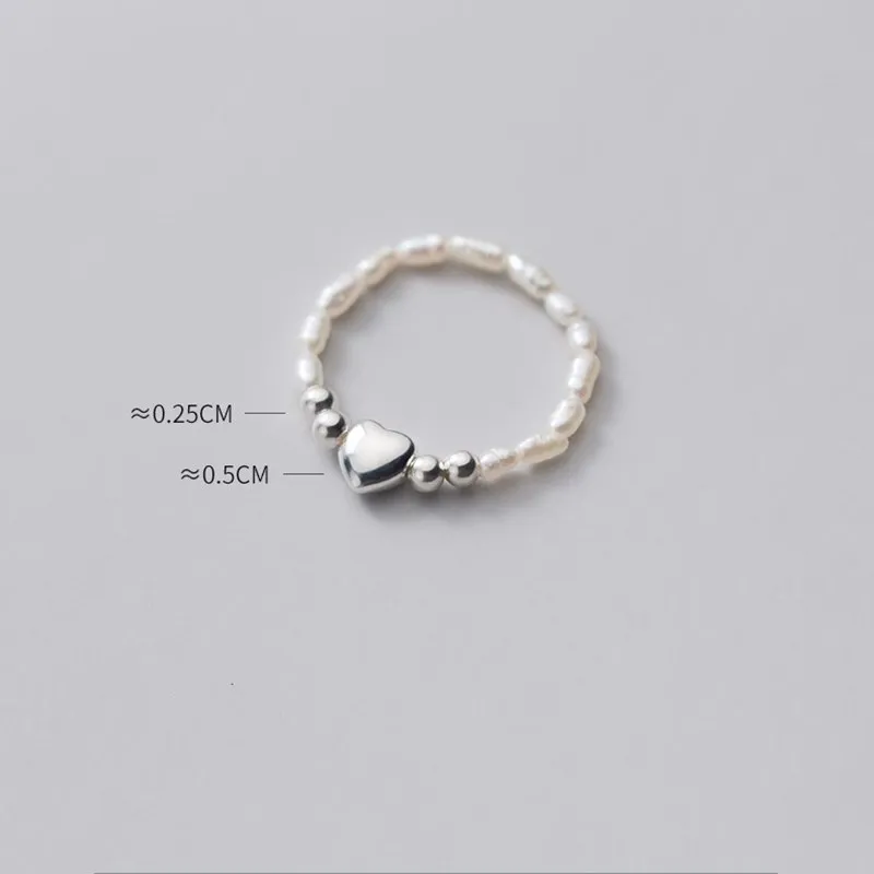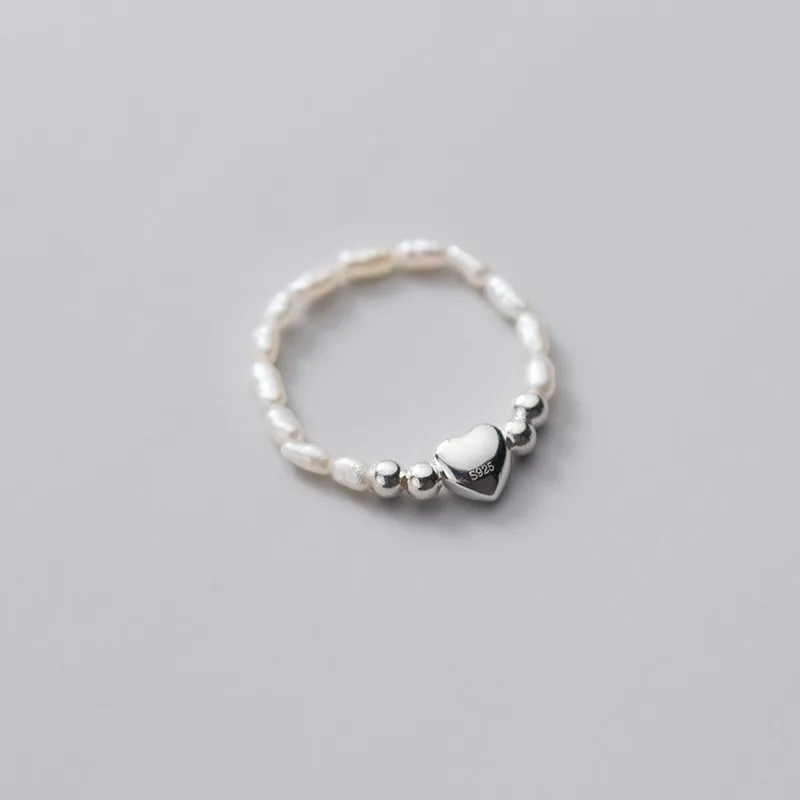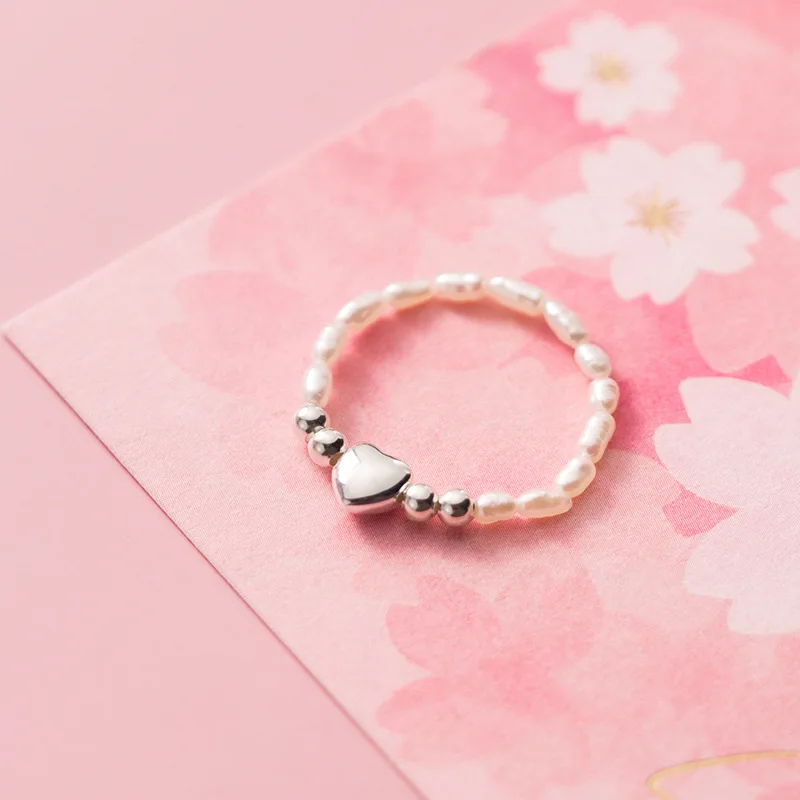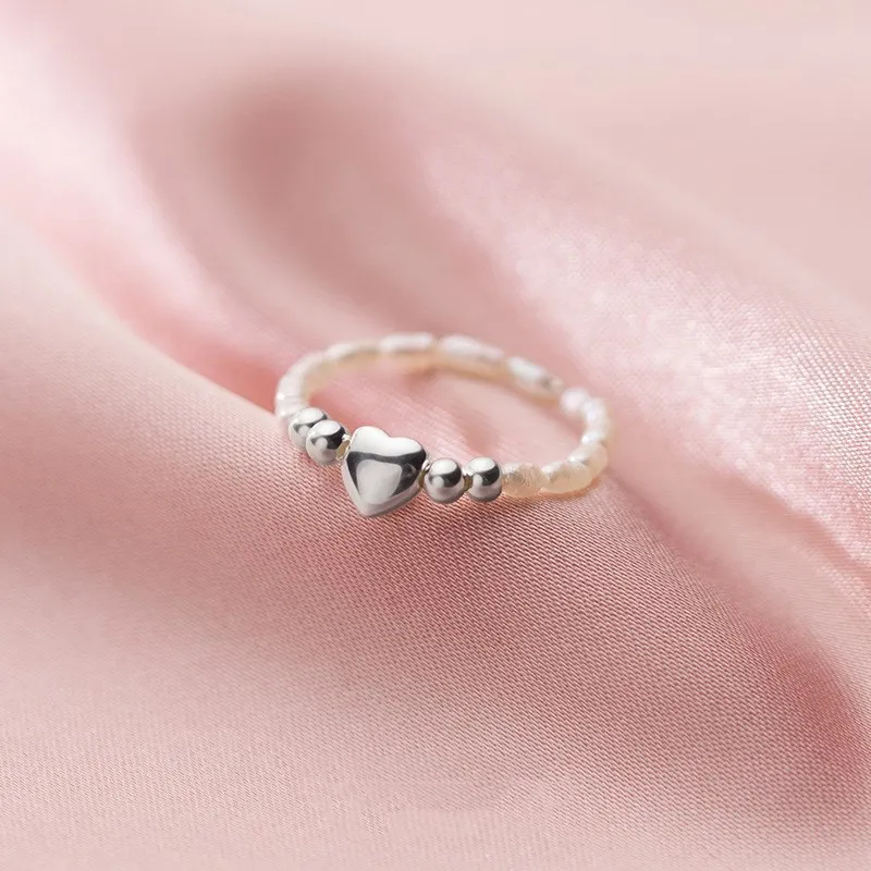 Кольцо женское из серебра 925 пробы, с жемчугом и сердечком
