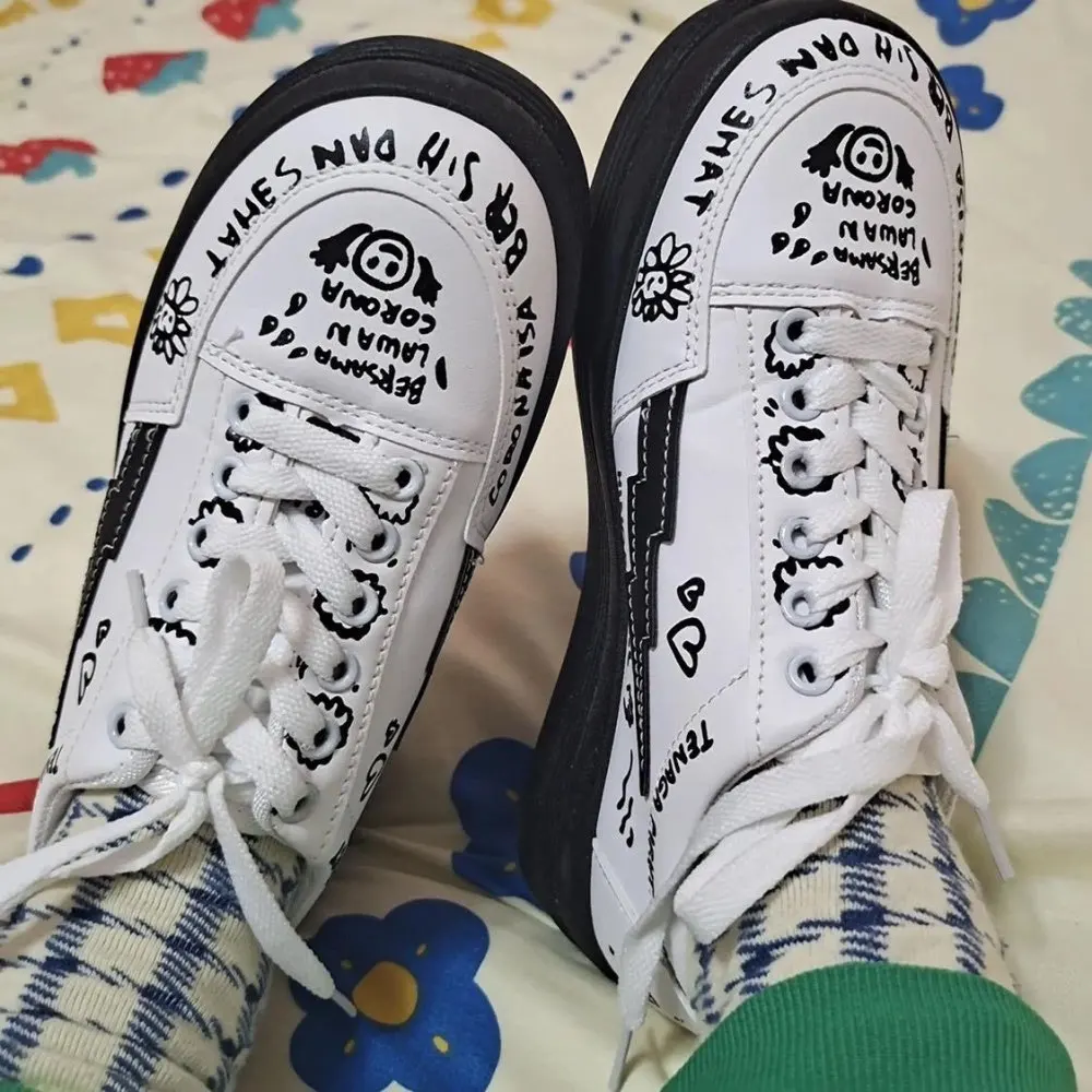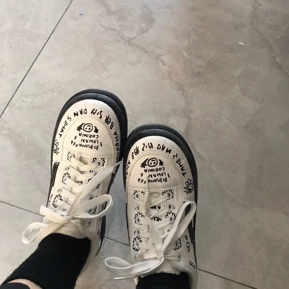 Кроссовки женские спортивные на платформе, Повседневная летняя винтажная Вулканизированная подошва, на вулканизированной подошве с граффити, для студентов колледжа, 2021