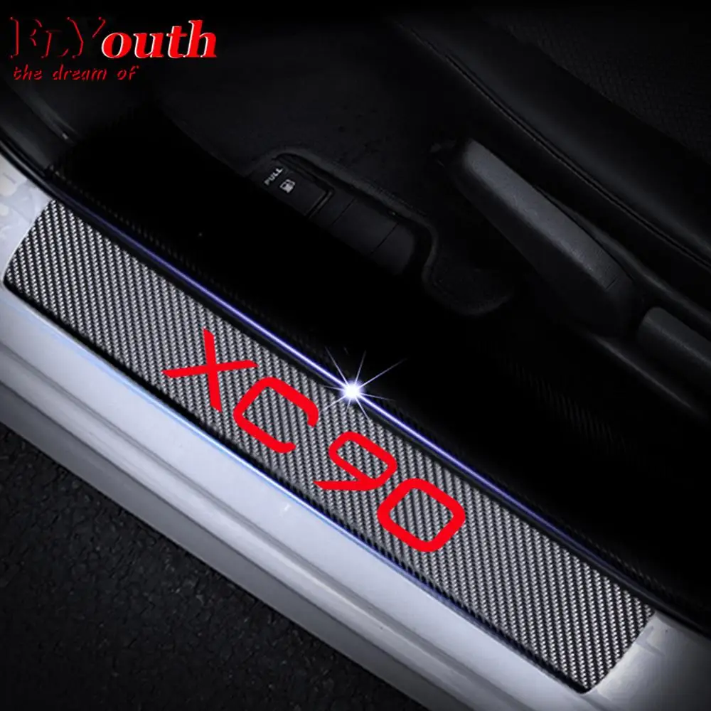 Автомобильный порог Добро пожаловать педаль наклейки Накладка на порог двериДля Volvo XC90Автомобильные Защитные пороги для автомобиля 4 шт. углеродное волокно