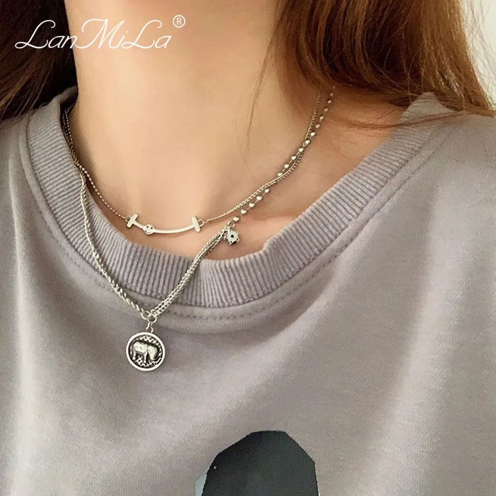 Новинка 2021, модное ожерелье LanMiLa со смайликом и монеткой, многослойная цепочка, женская бижутерия