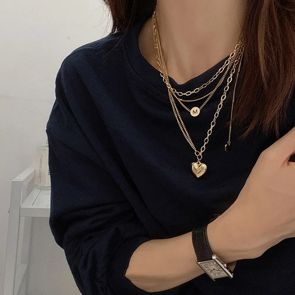 Женское Ожерелье с кисточкой и круглым надписью, подвеска в форме сердца, многослойная цепочка, новинка 2021
