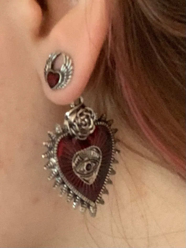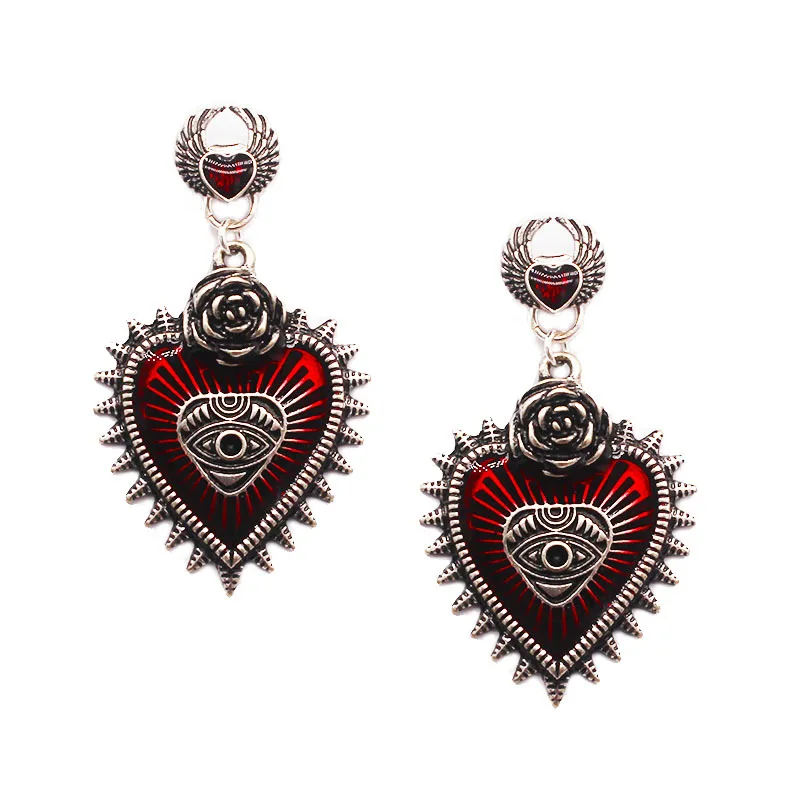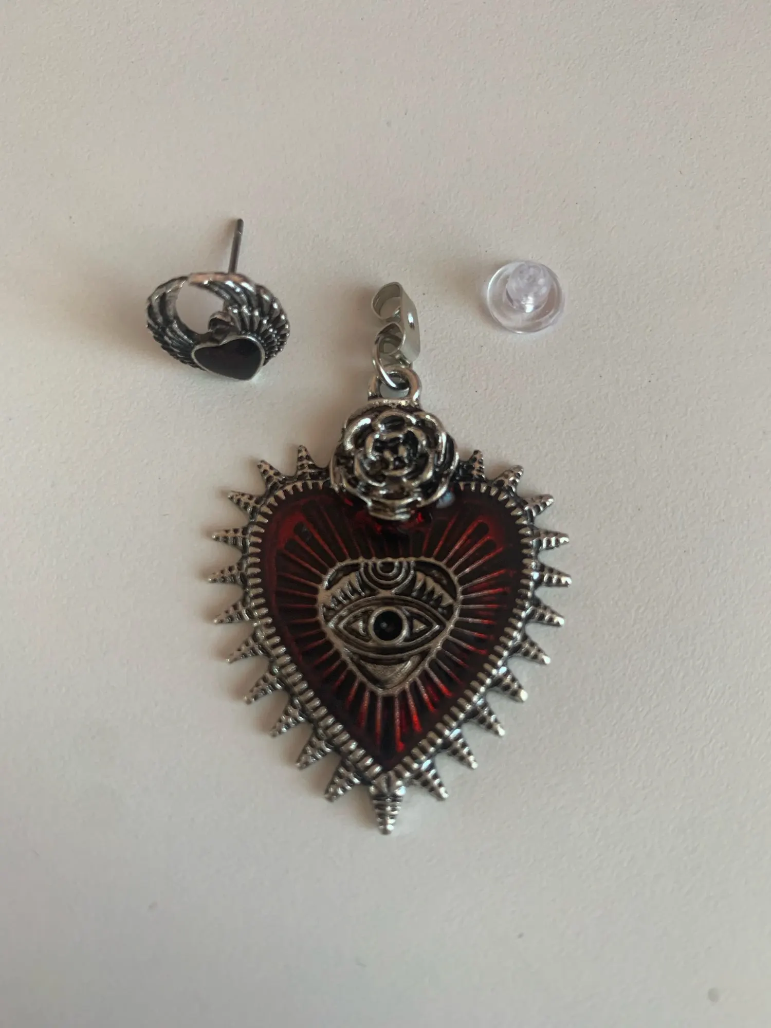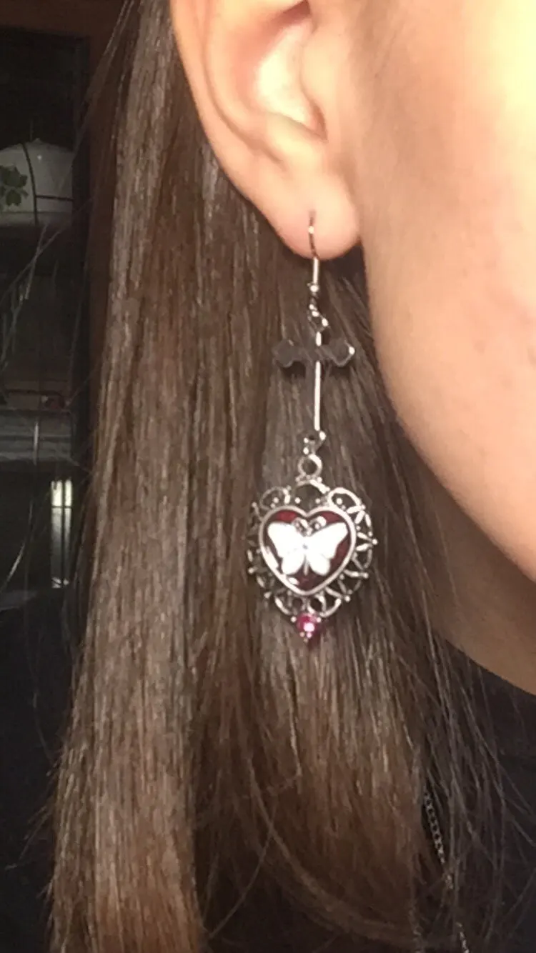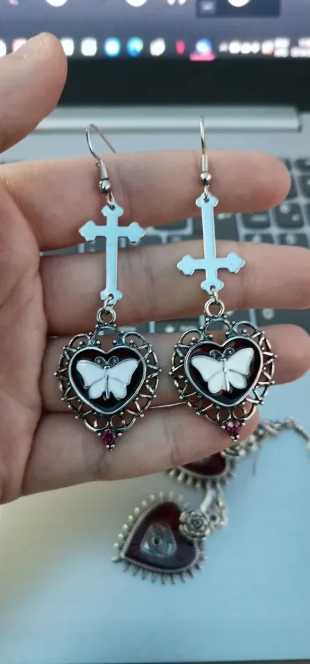 Женские винтажные Серьги Goth, таинственный Темный гроб, ювелирные изделия, розовое сердце, Бабочка, череп летучей мыши, амулеты ангелы