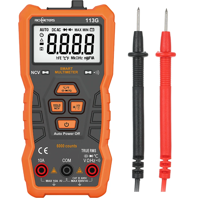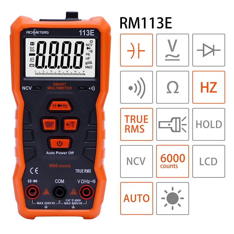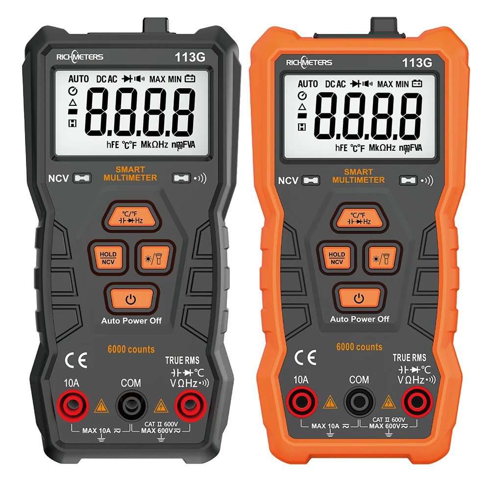 Цифровой мультиметр RICHMETERS RM113G, 6000 отсчетов, автоматический измеритель напряжения постоянногопеременного тока, Бесконтактный индикатор непрерывности, RM113ADE с магнитом