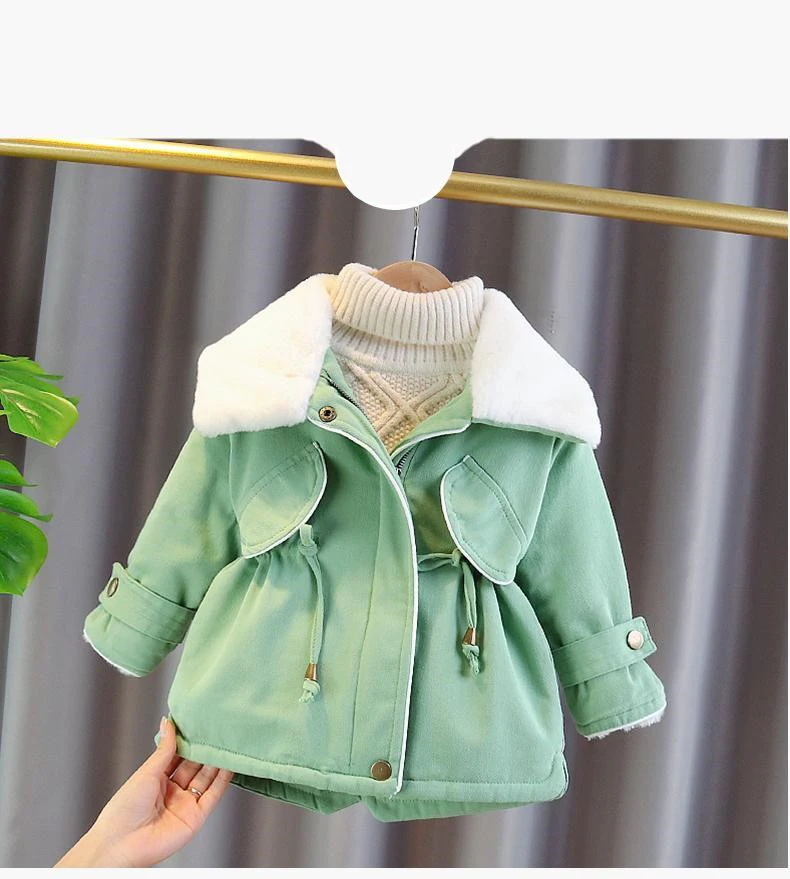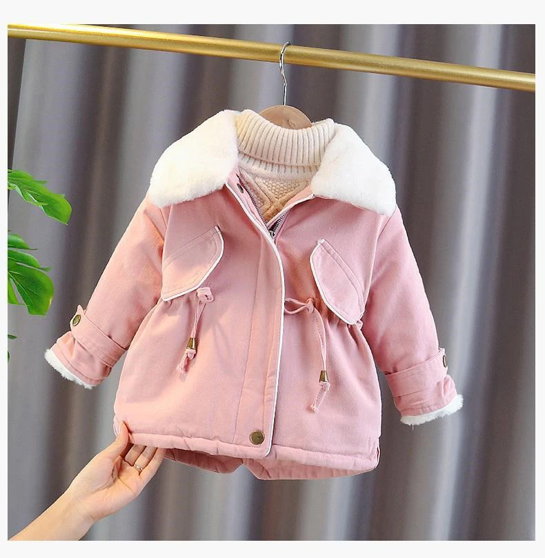 Зимнее пальто для девочек, с искусственным мехом, с большими лацканами и кулиской, ветрозащитное, От 2 до 6 лет