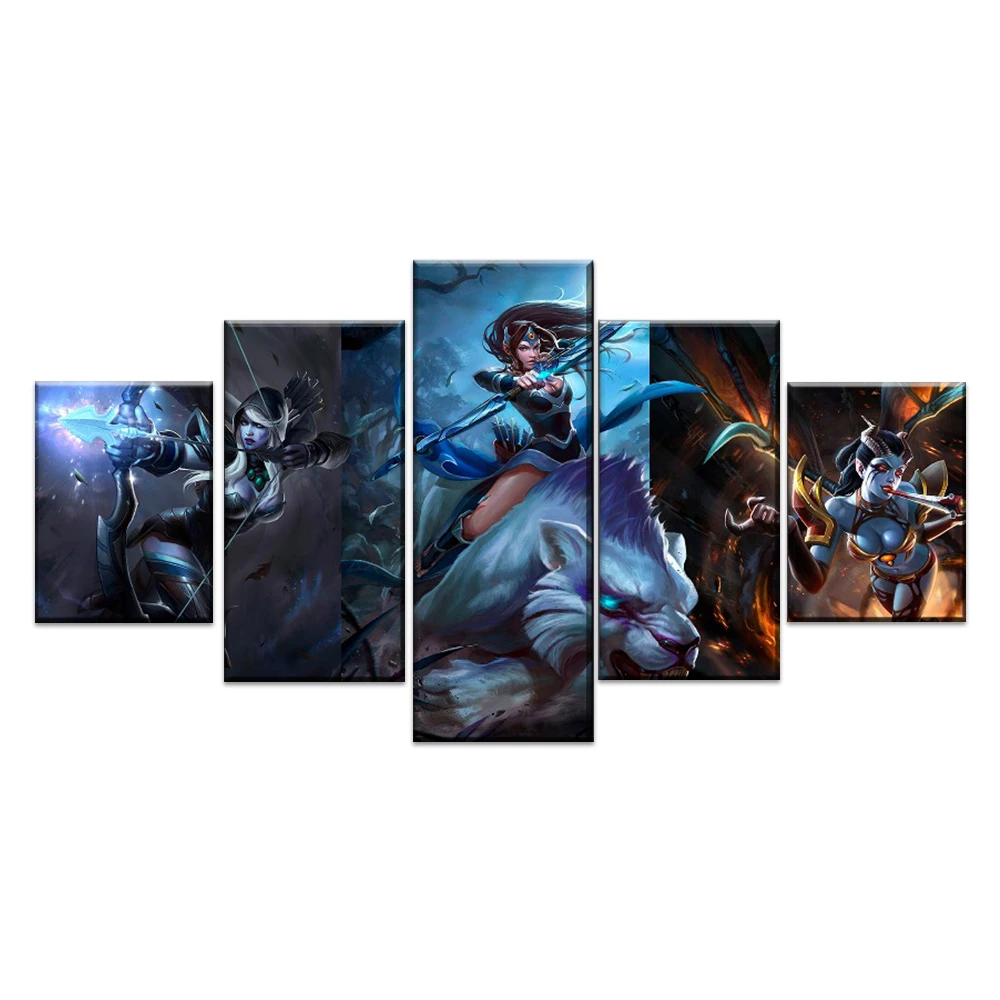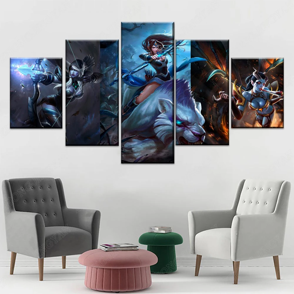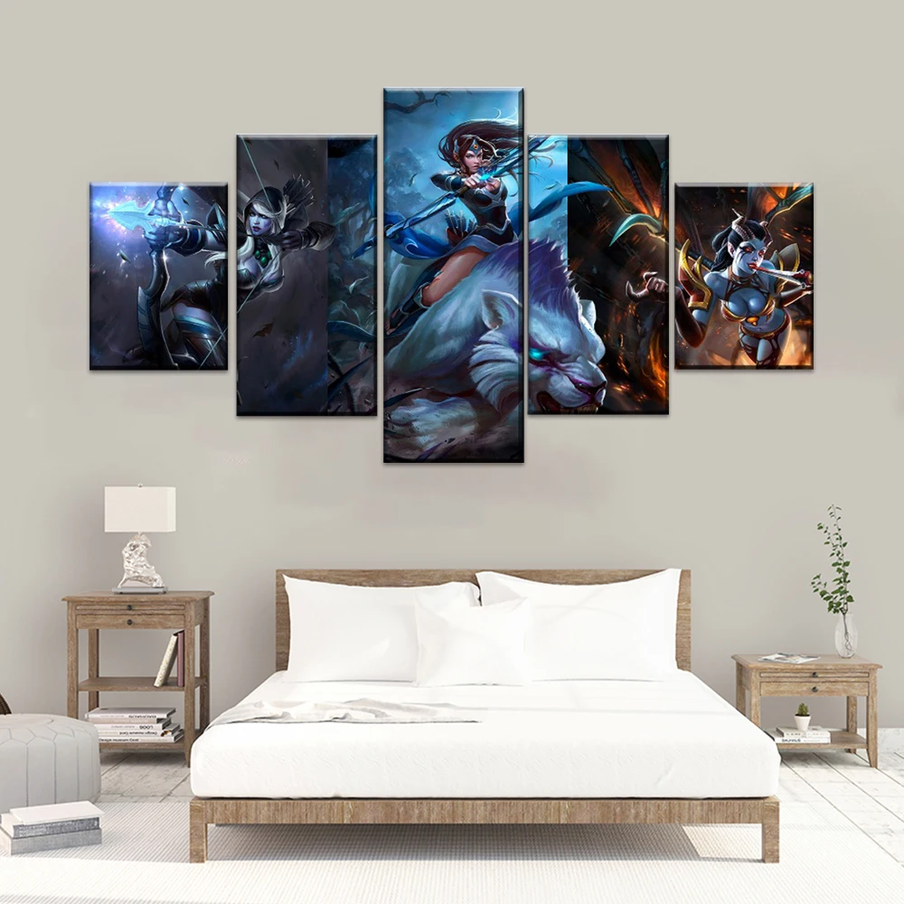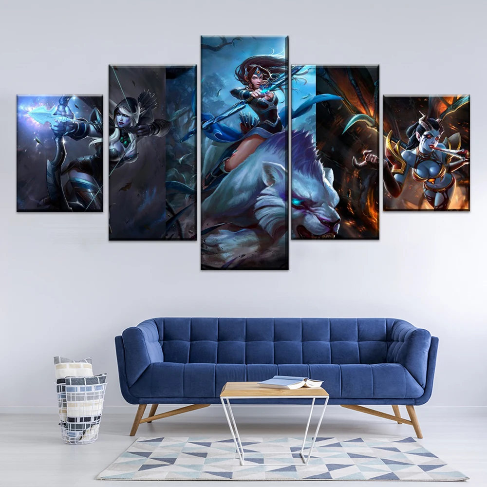 Настенные картины DotA 2 для украшения дома, 5 шт., игровые картины, Hd печать, современный плакат для спальни с модульной рамкой