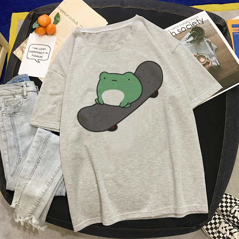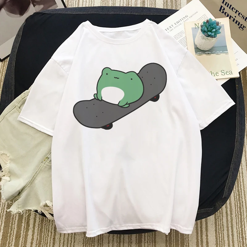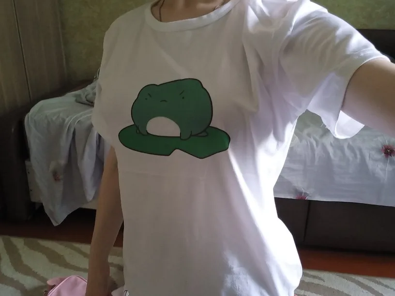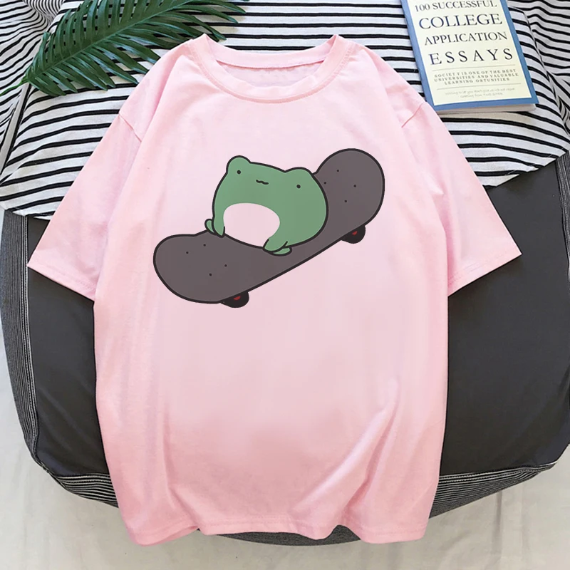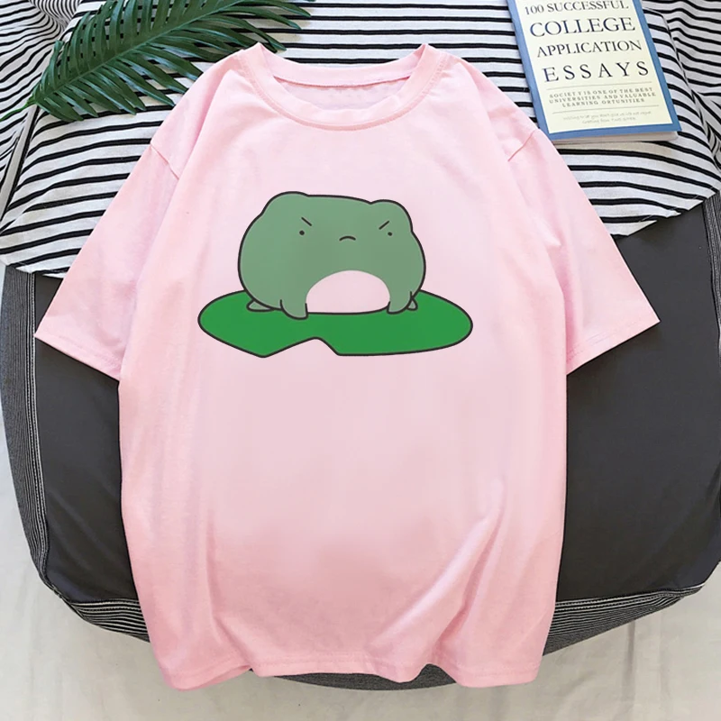 Футболка женская оверсайз с лягушкой, модный женские футболки топ на шнуровке в стиле Харадзюку, розовый топ в Корейском стиле, на лето