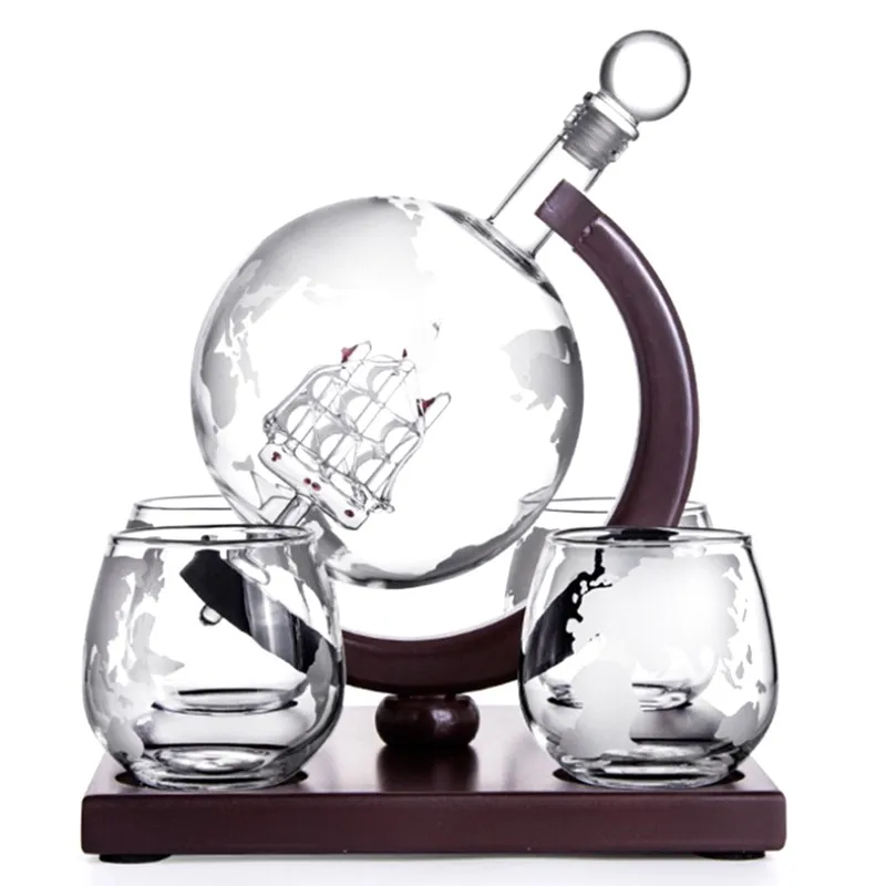 Графин для виски, графин для ликера, водки, графин для виски без свинца, графин для виски, Набор Элегантный винный бокал, парусная лодка, внутренняя поверхность карты мира