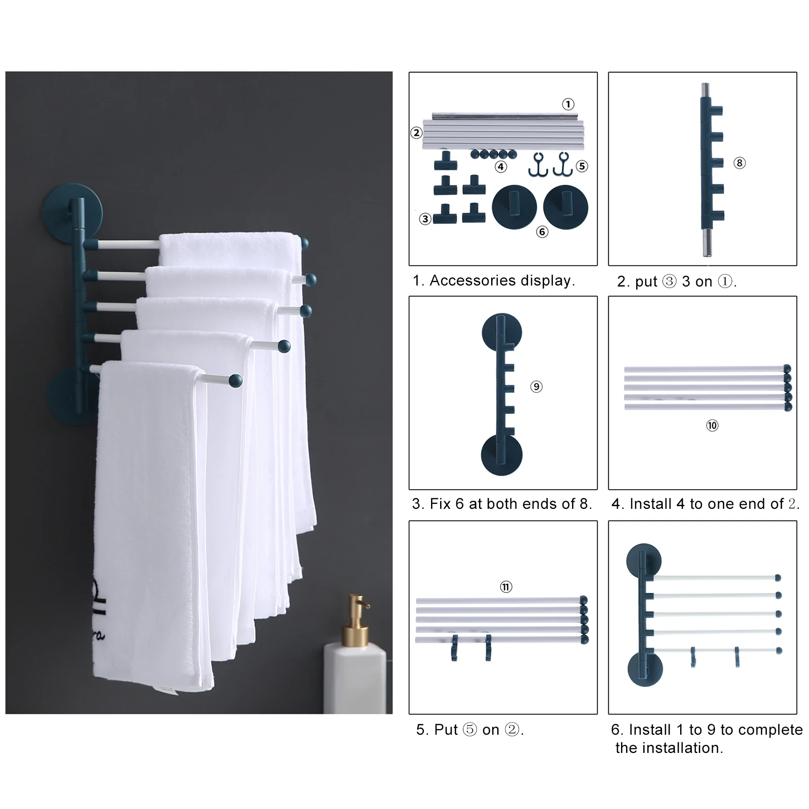 Вешалка для полотенец может вращаться на 180 градусов по горизонтали, поэтому достаточно соответствует потребностям одежды и полотенец
