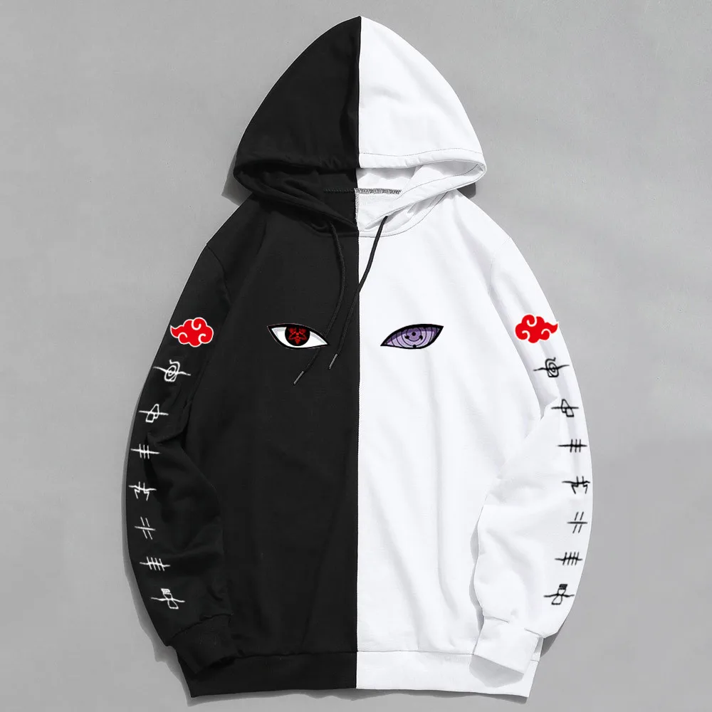 Толстовка с капюшоном, двухцветная, с принтом Шаринган, в стиле Хар...