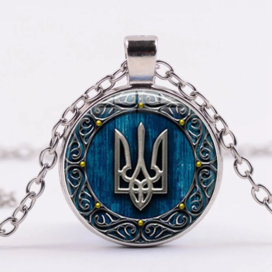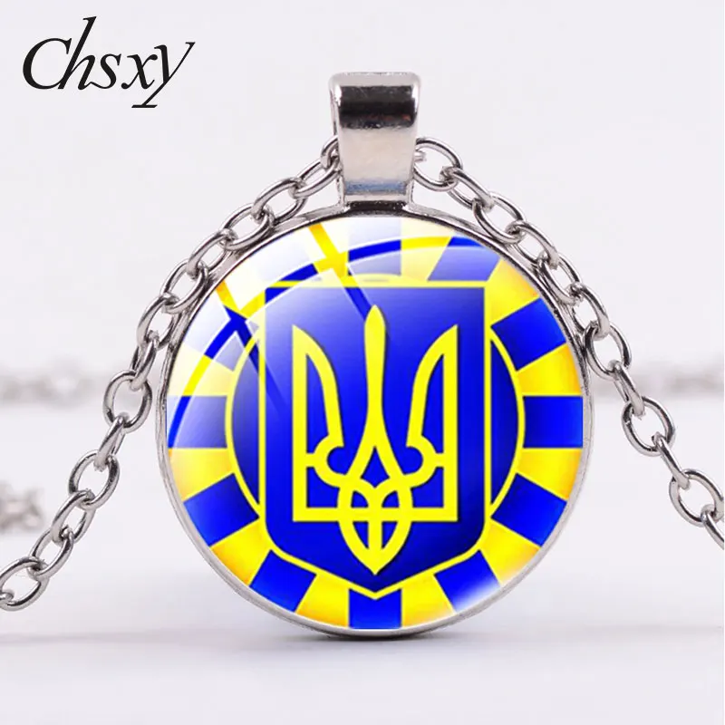CHSXY винтажное ожерелье Tryzub, украинское ожерелье, украинский символ руны, художественный узор, кулон со стеклянным куполом, ожерелья для мужчин и женщин, подарочные украшения