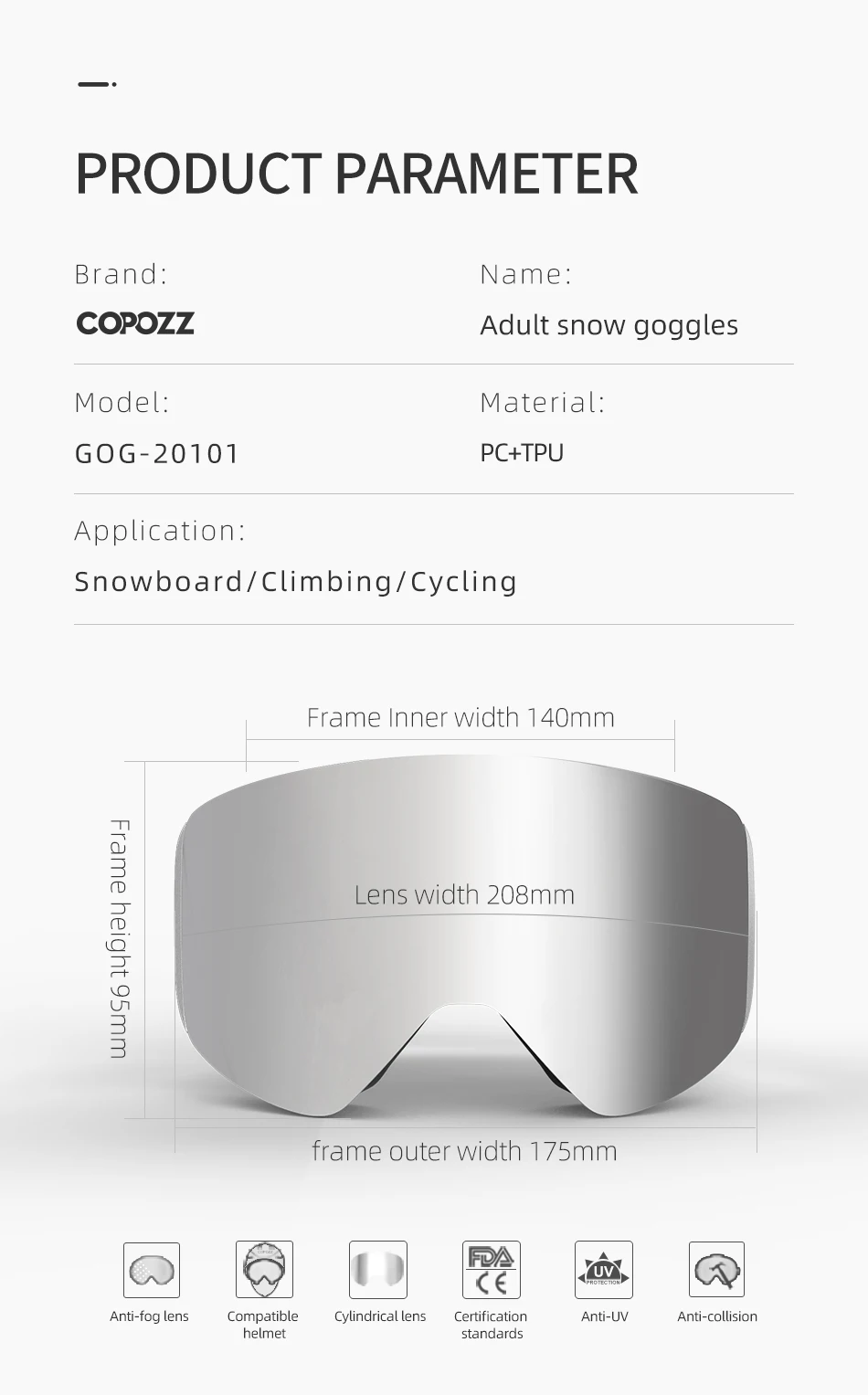 Профессиональные зимние лыжные очки COPOZZ, магнитные Быстросменные двухслойные противотуманные очки для сноуборда, мужские и женские лыжное оборудование