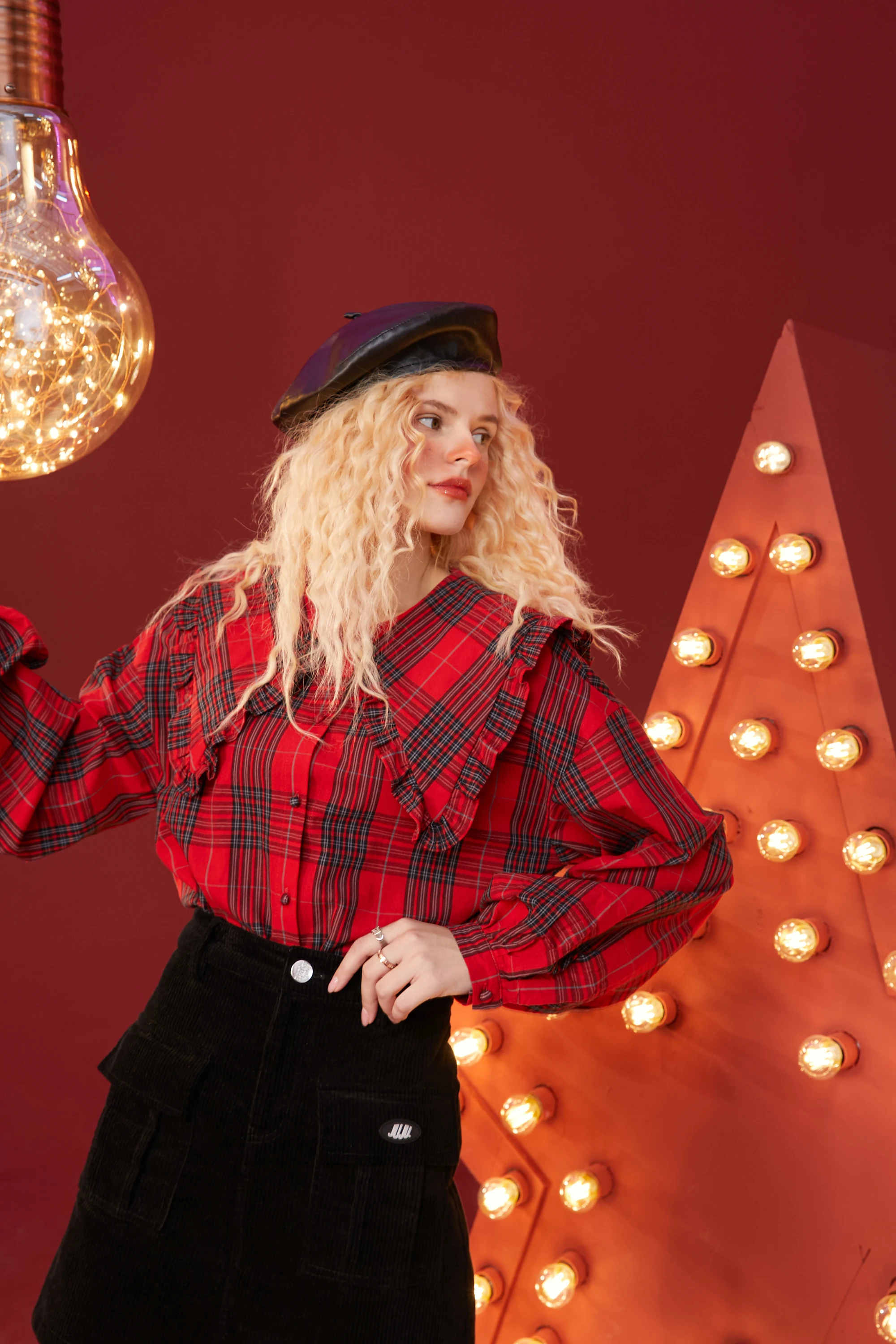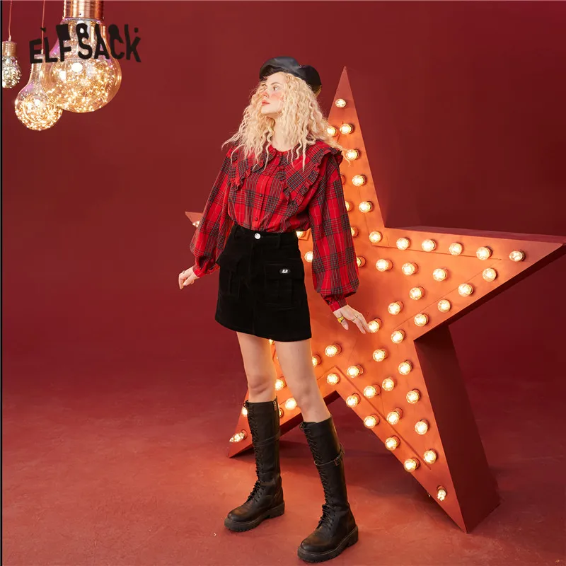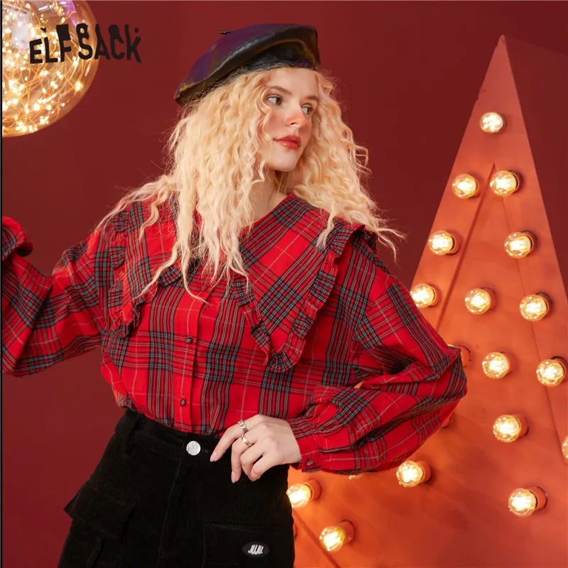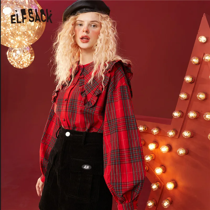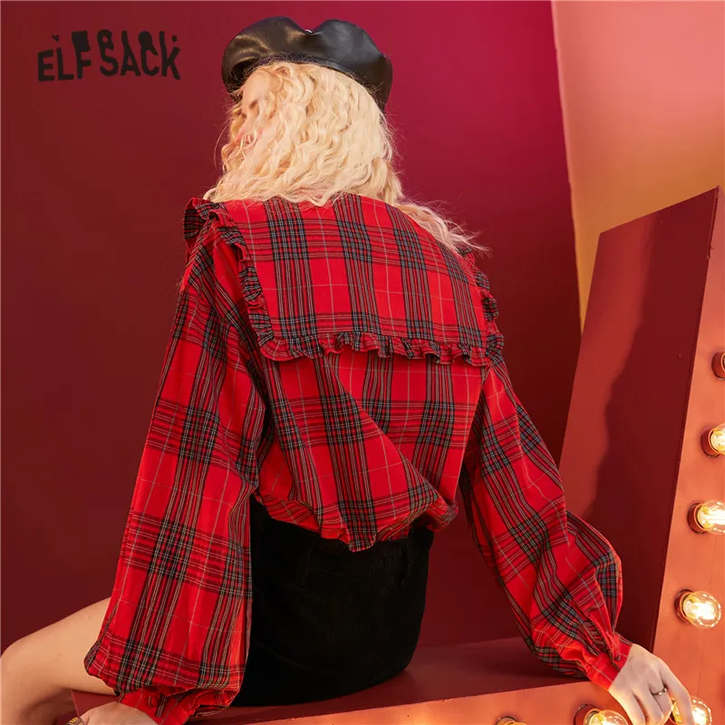 Женская клетчатая рубашка ELFSACK, британский однобортный Повседневный Топ с рукавами-фонариками в Корейском стиле, зима 2020