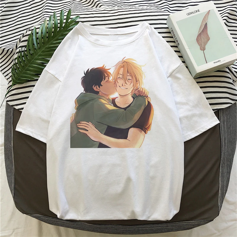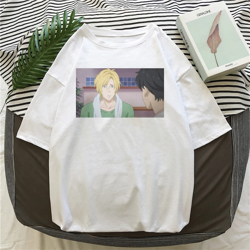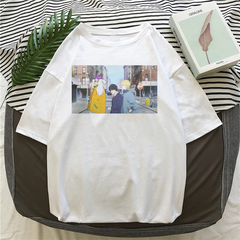 Футболка женская с забавным японским аниме, уличная одежда в стиле Харадзюку, смешная рубашка с банановыми рыбками, топ в Корейском стиле, лето