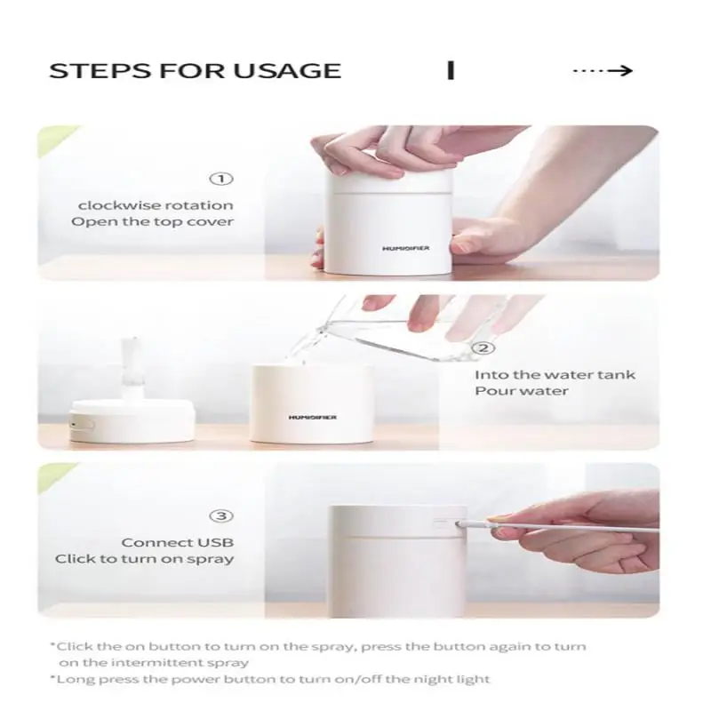 Настольный бесшумный увлажнитель воздуха 1 шт., 300 мл, нано большой емкости, мелкий туман, USB распылитель с подсветильник, для комнаты, спальни, офиса, снятие сухости