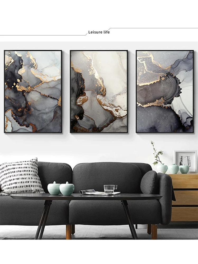 3 шт. серая абстрактная Золотая Роскошная Алмазная вышивка Алмазная картина мозаика Триптих 5d Картина пейзаж Искусство домашний подарок,
