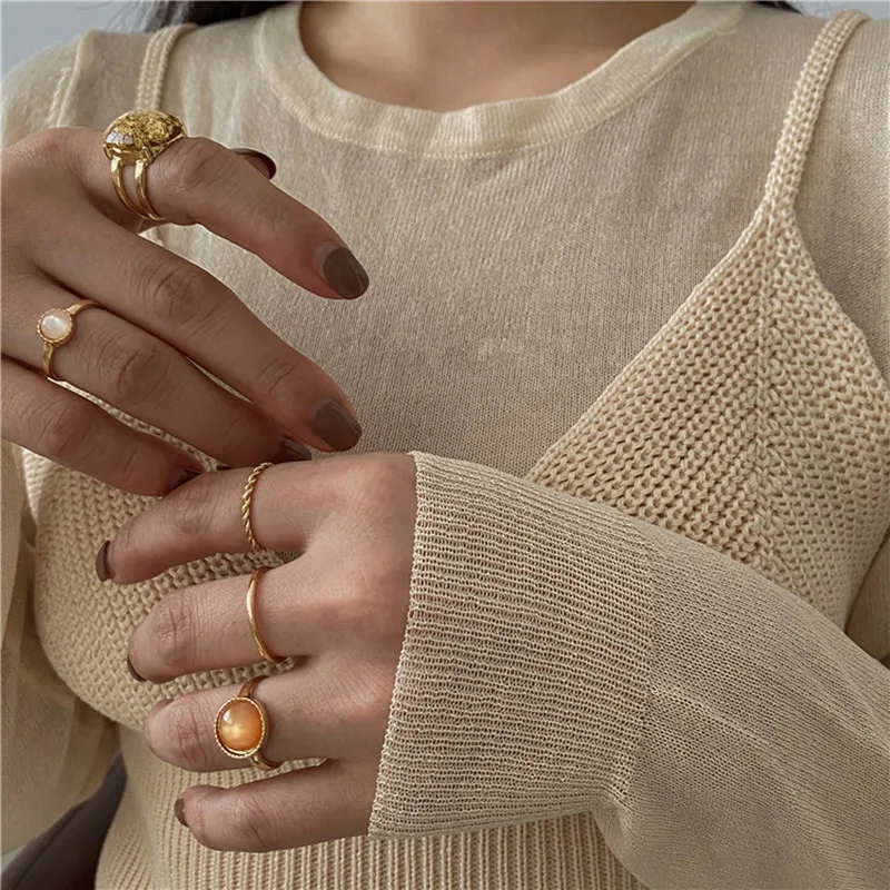 Женские кольца с разноцветными камнями, 8 шт.компл., винтажные, лет...