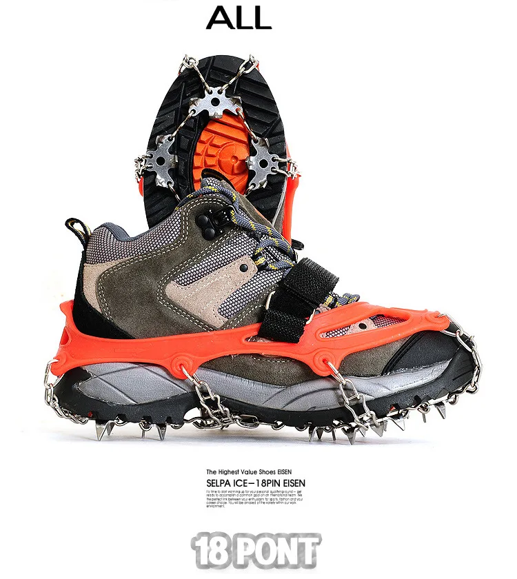 На открытом воздухе Альпинизм противоскользящие кошки Зимняя прогулка 18 зубов подледной рыбалки снегоступы марганца Сталь скольжения бахилы