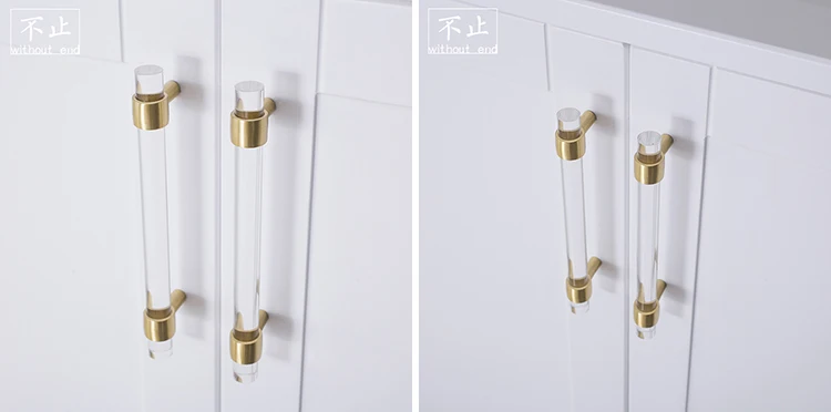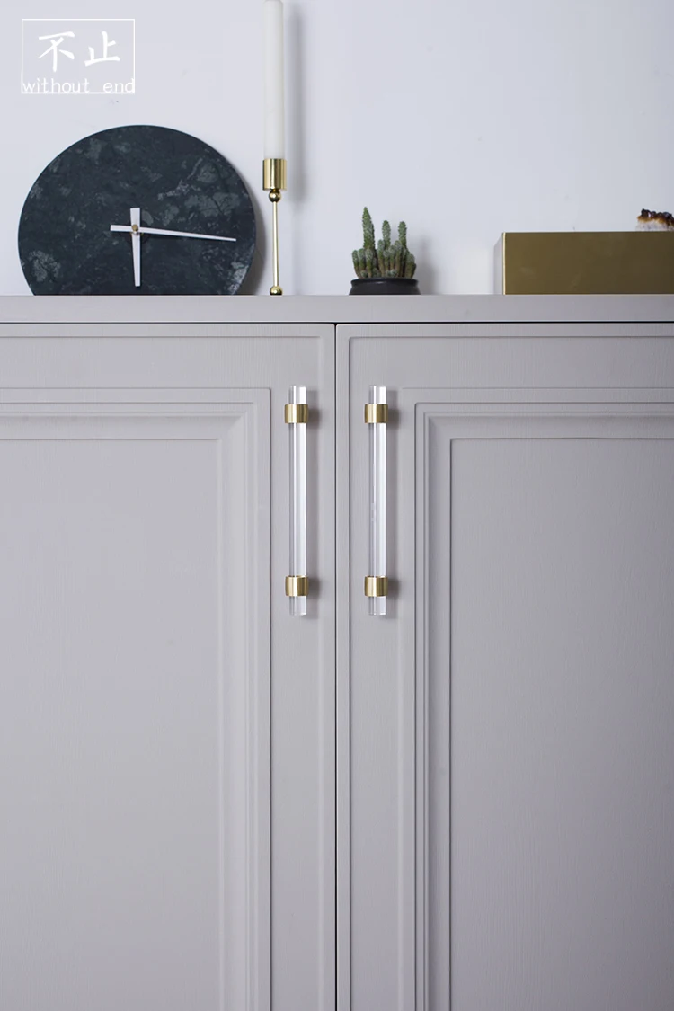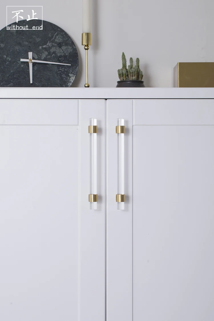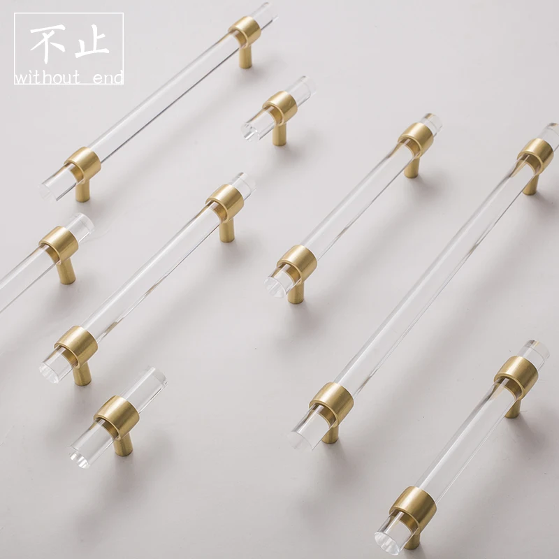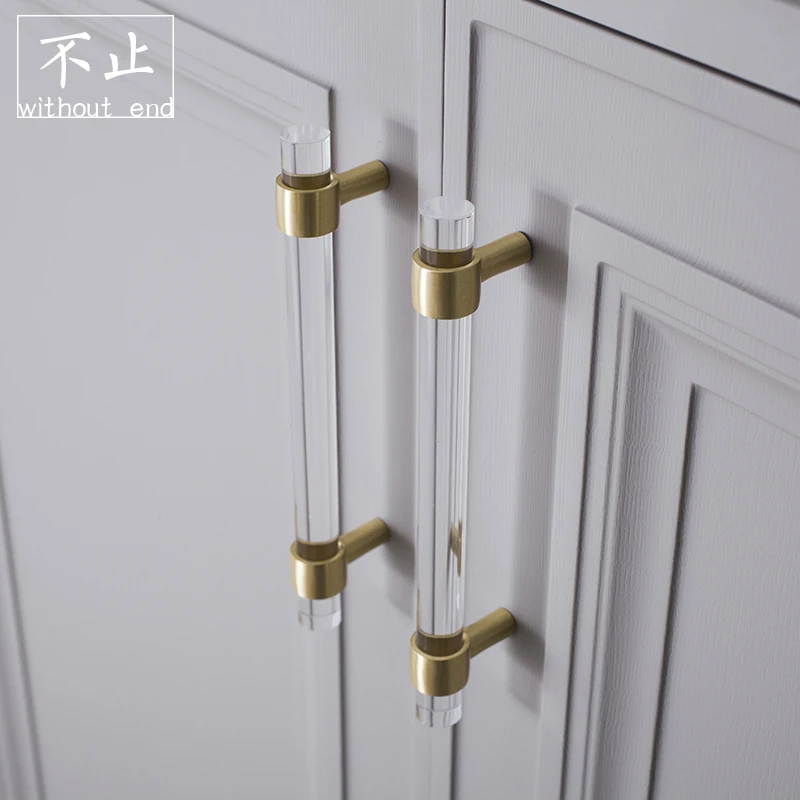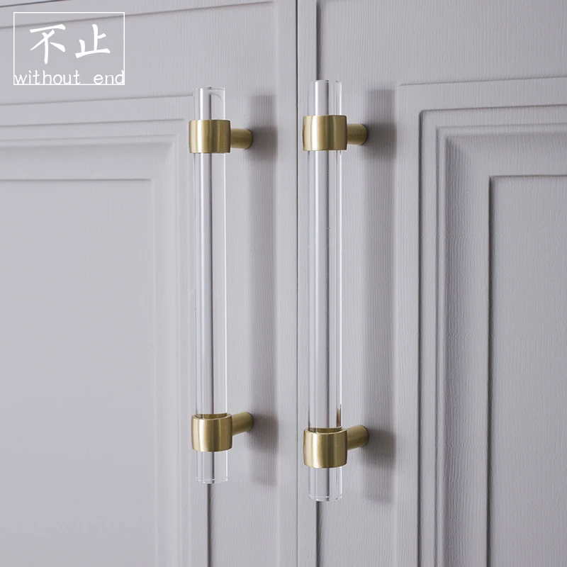 LKL акриловые латунная, с длинной ручкой современный простой шкаф из белого золота прозрачный ящик шкаф мебель деревянная дверь тянет