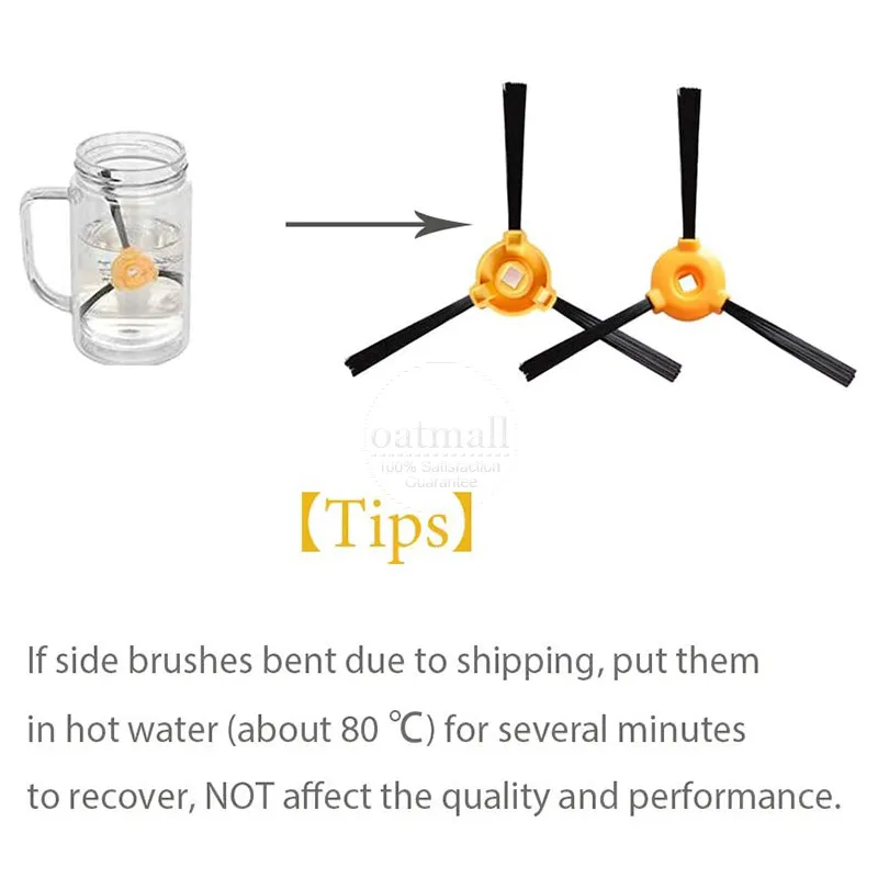 Простота установки:Защелкивается на месте для быстрой и легкой рутинной замены. Если боковые щетки погнуты из-за транспортировки, поместите их в горячую воду (около 80 ℃) на несколько минут для восстановления, это не влияет на качество и производительность товаров.