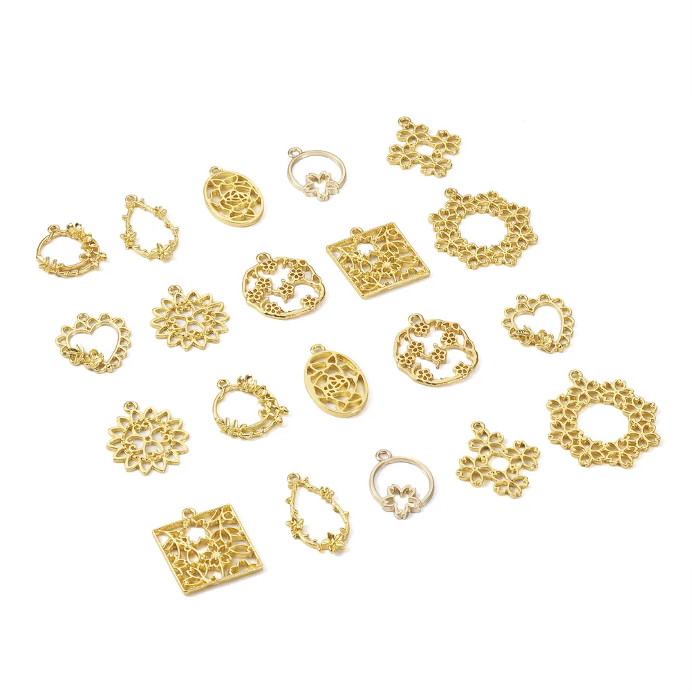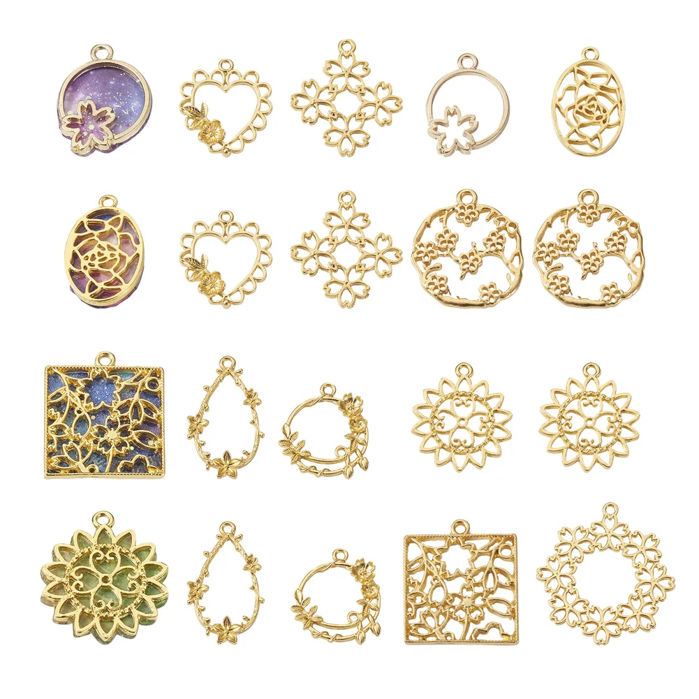 Pandahall полые открытые ободки рамка Подвески для смолы подвески смешанные формы Золотой Цвет DIY серьги ожерелье Изготовление ювелирных изделий