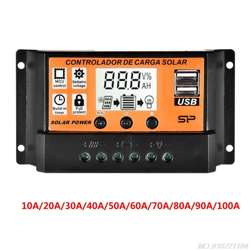 Автоматический ЖК-экран MPPT 10a20A30A40A50A60a70a80a90A100A, контроллер заряда солнечной батареи с двойным USB, регулятор солнечной панели D22 20
