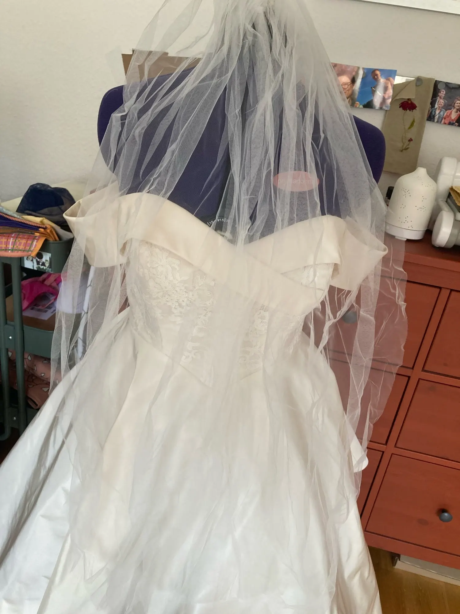 Эта вуаль очень красивая и очень простая. Качество изготовления хорошее, у вас есть он, но определенно парящий, чтобы удалить морщины. Это не проблема. Я считаю это лично, но не так красиво, по сравнению с другими, по цене он выглядит дешево, потому что материал очень тонкий, а край ниже только выреза. Но, возможно, это также не мой стиль