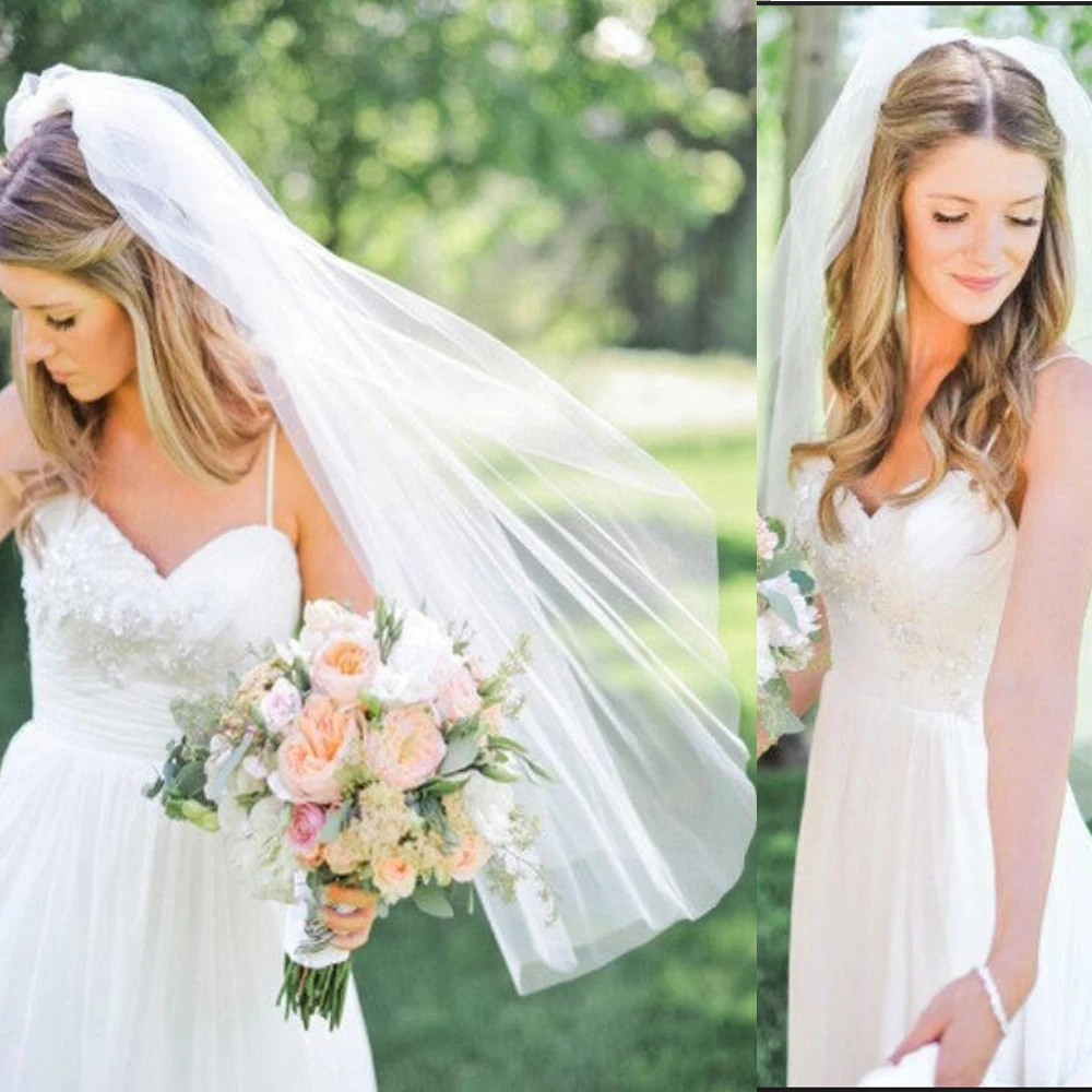 Однослойная короткая свадебная фата с обрезанным краем, Тюлевая недорогая Фата для невесты с гребнем, простая вуаль свадебные аксессуары невесты цвета слоновой кости