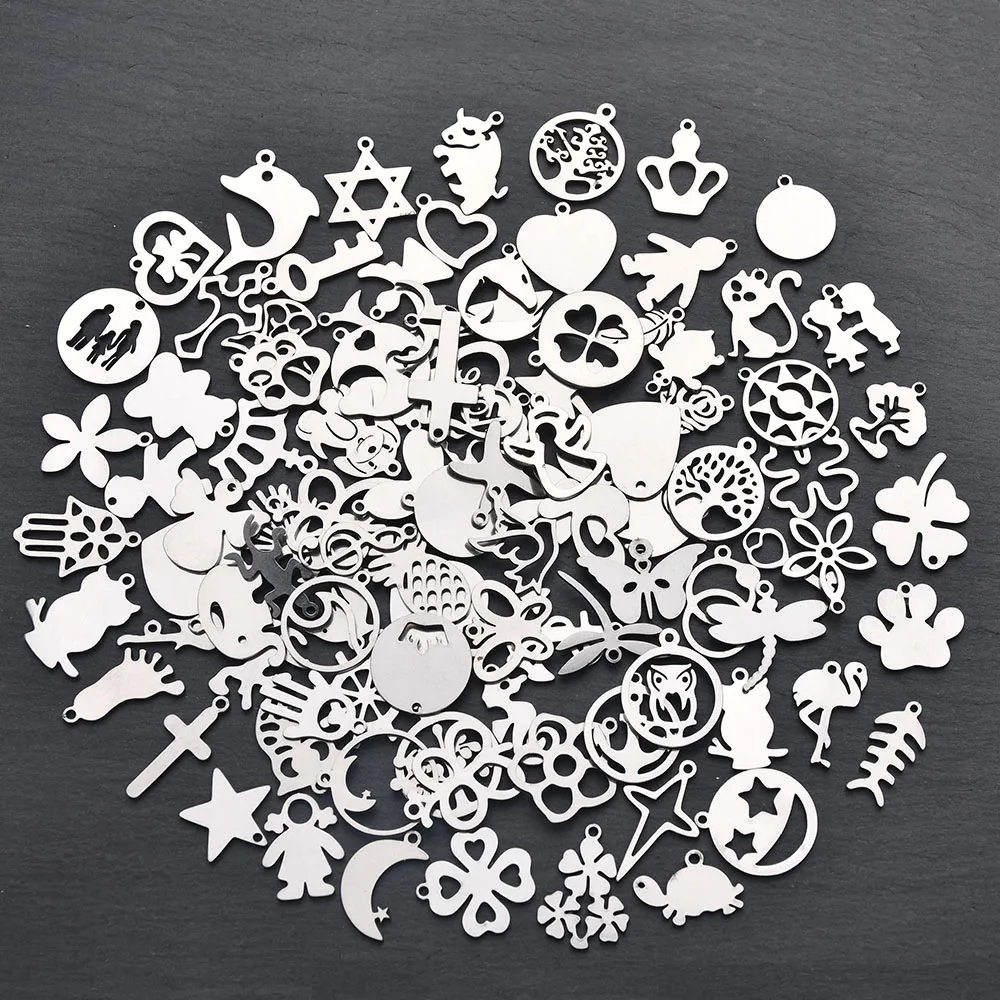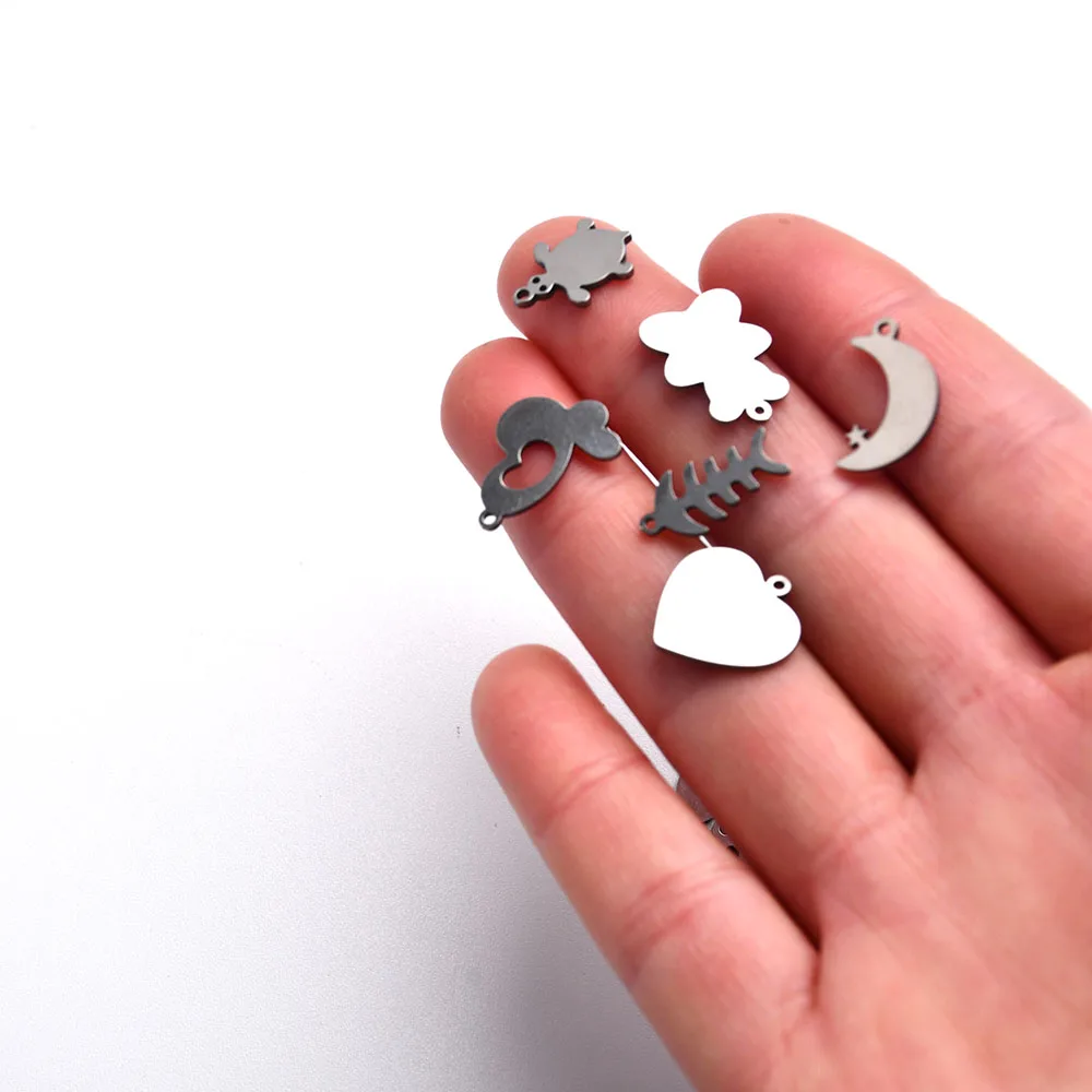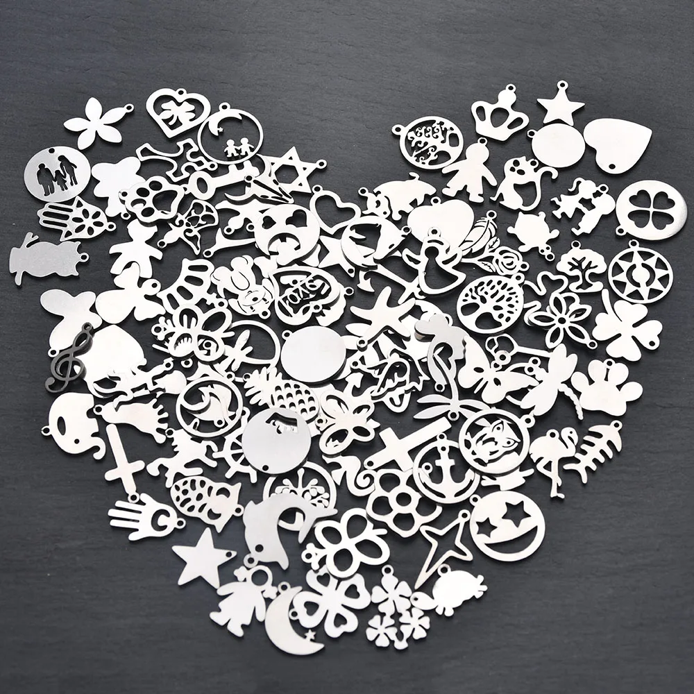 Смешанные 100 шт. подвески из нержавеющей стали в форме сердца, пустые штампованные бирки, подвески для браслета, сережек, изготовление