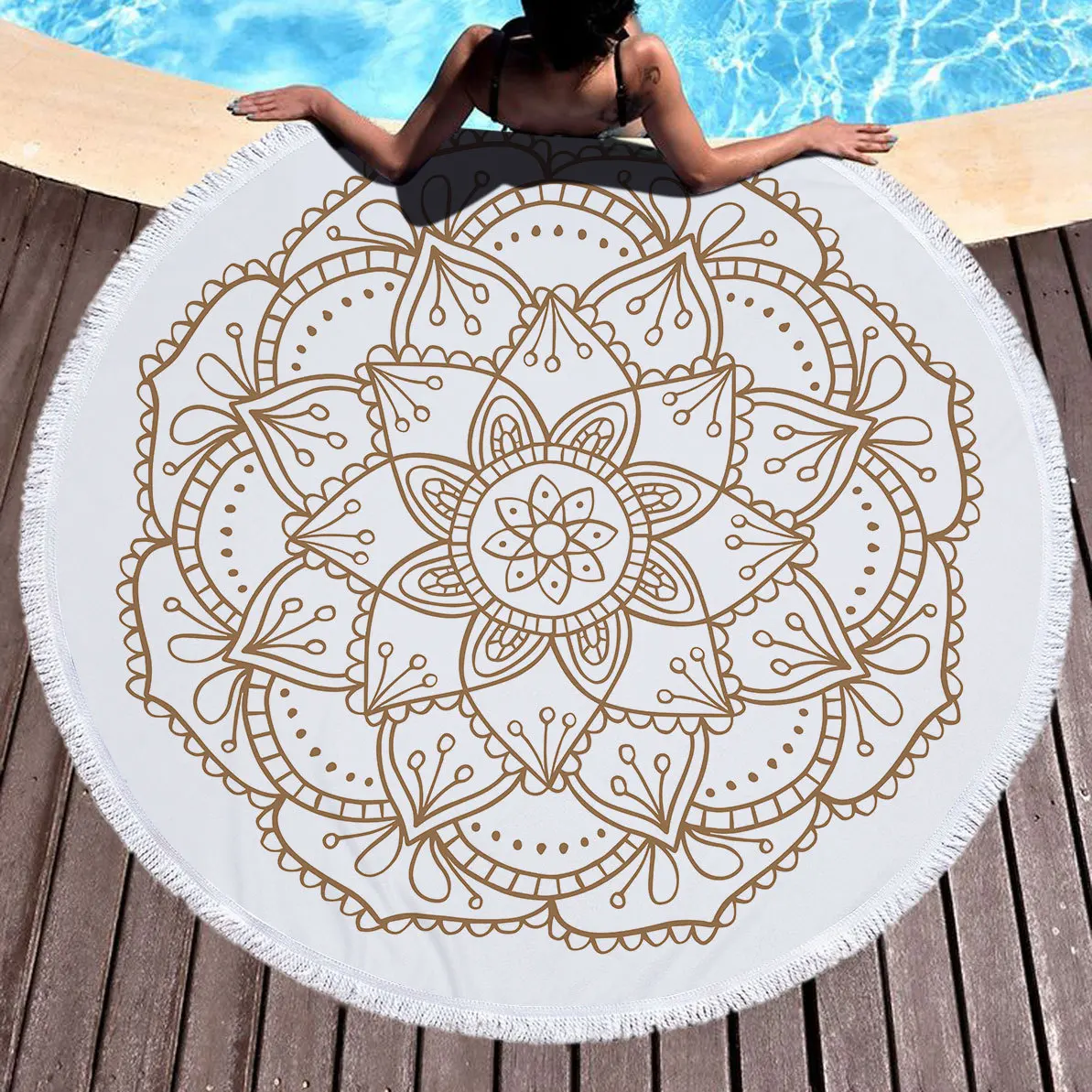 Пляжное полотенце Mandala 59 ''из микрофибры, влагопоглощающее банное полотенце с кисточкой