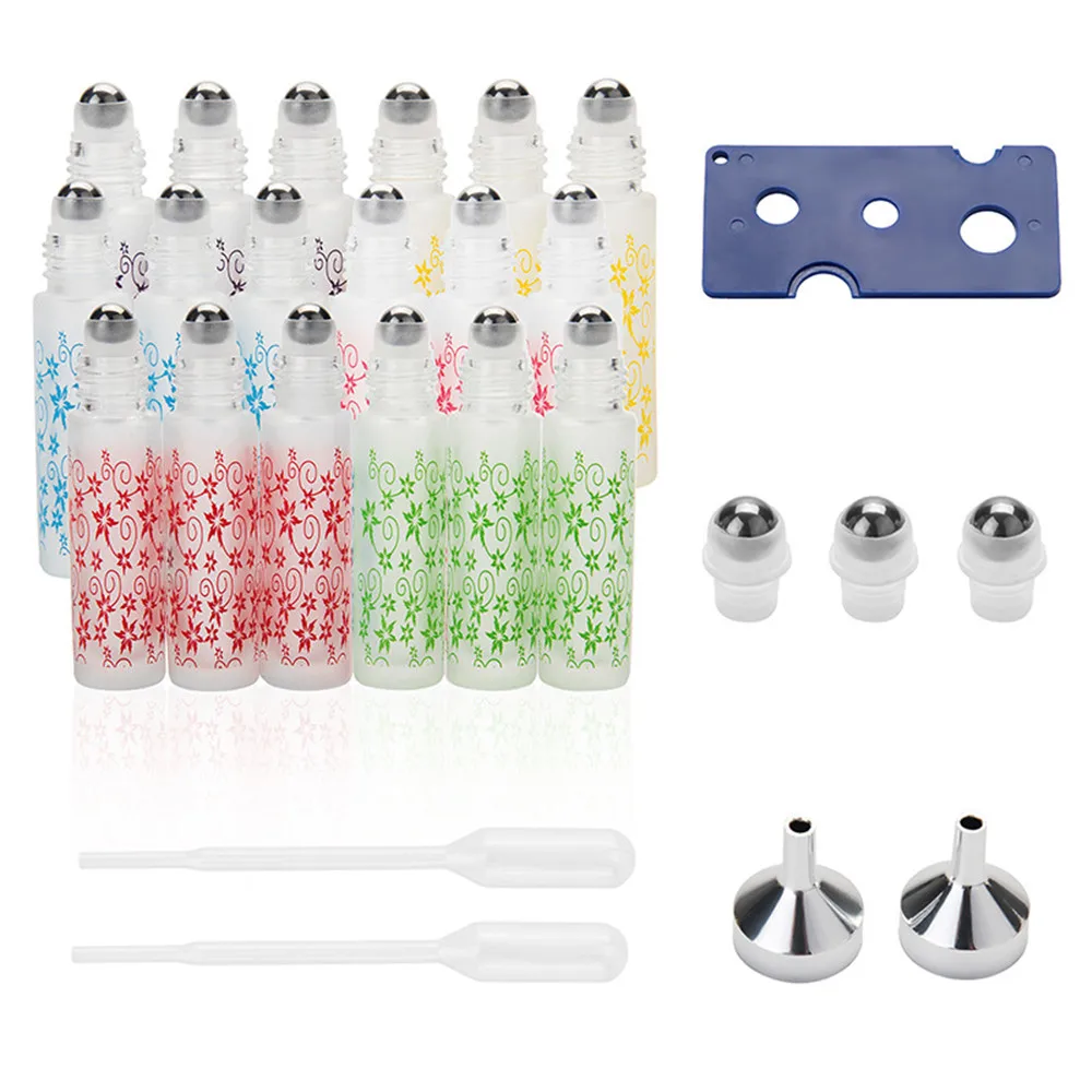 26 шт.компл. 10 мл дорожные бутылки для эфирного масла со стеклянными роликами и пустым контейнером
