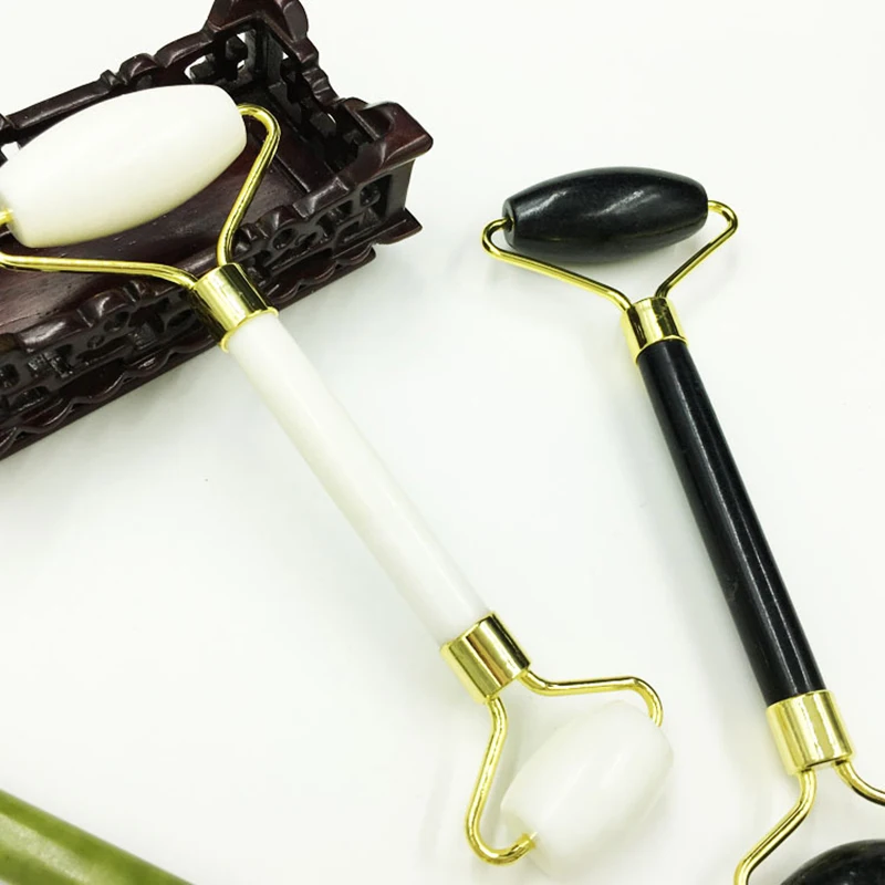 Массажный ролик с двойной головкой, Нефритовый камень Bowlder для красоты лица, палочка для красоты лица, натуральный