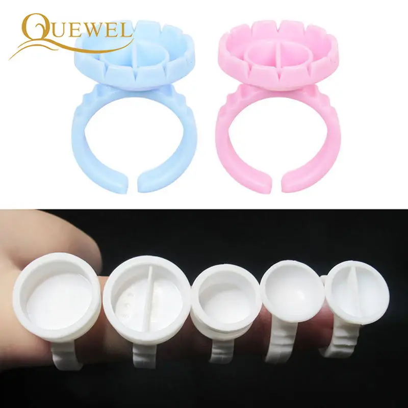 Quewel одноразовые реснички клей кольцо 100 шт клейкий держатель палитра объем вентиляторы ресницы удлинительные кольца контейнер оптовая продажа