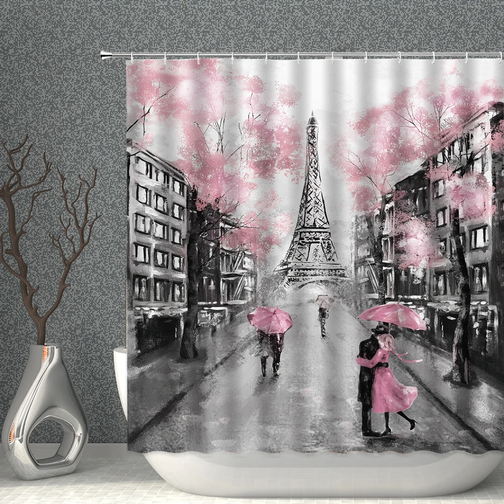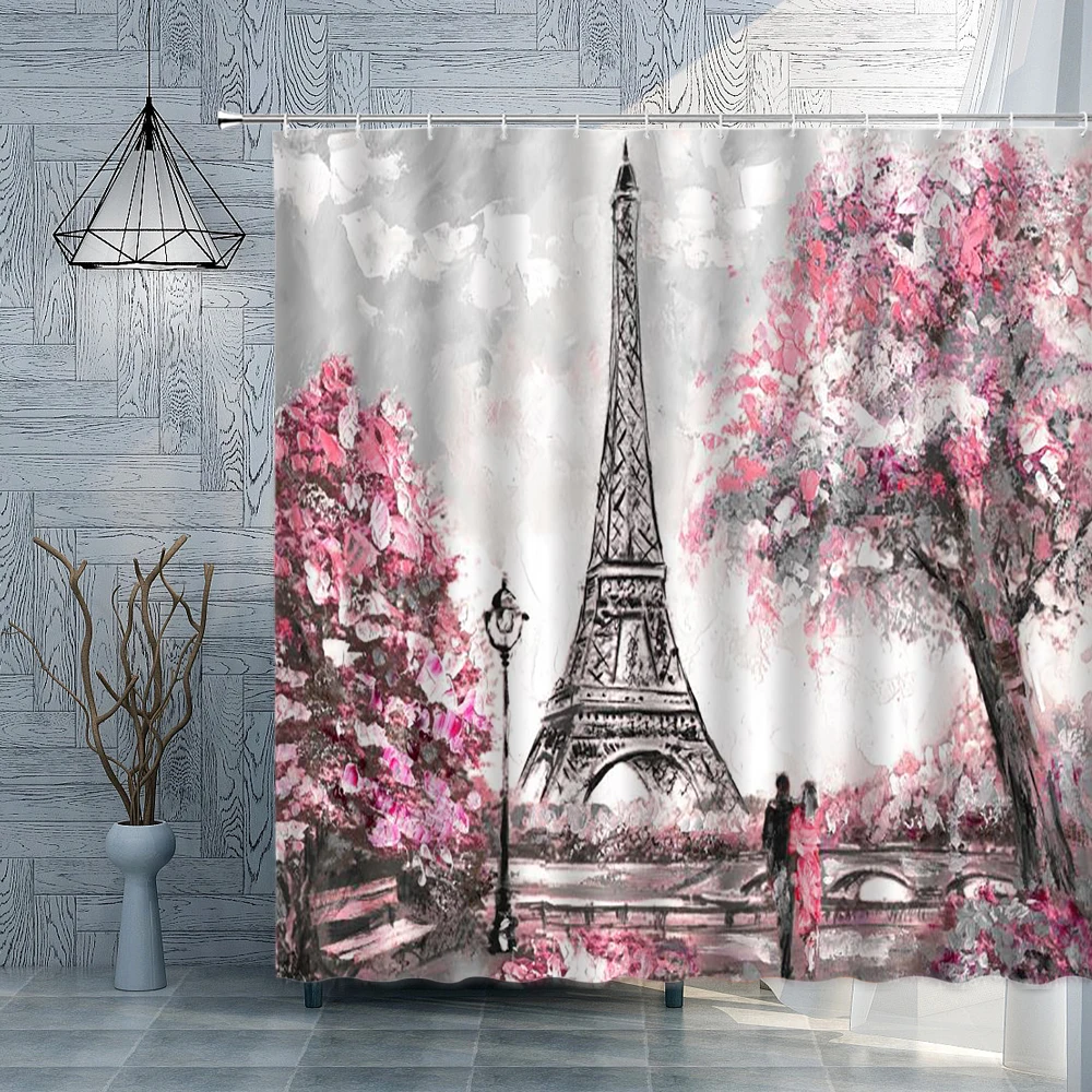 Романтическая занавеска для душа для влюбленных, водонепроницаемая железная башня, розовая ткань из полиэстера, занавеска для ванной, 3D украшение на День святого Валентина