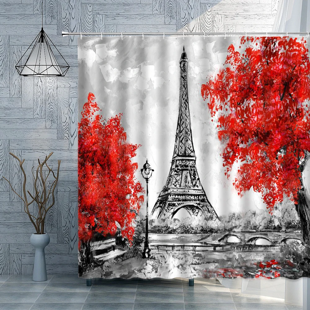 Занавеска для душа, из полиэстера, водонепроницаемая, в виде железной башни
