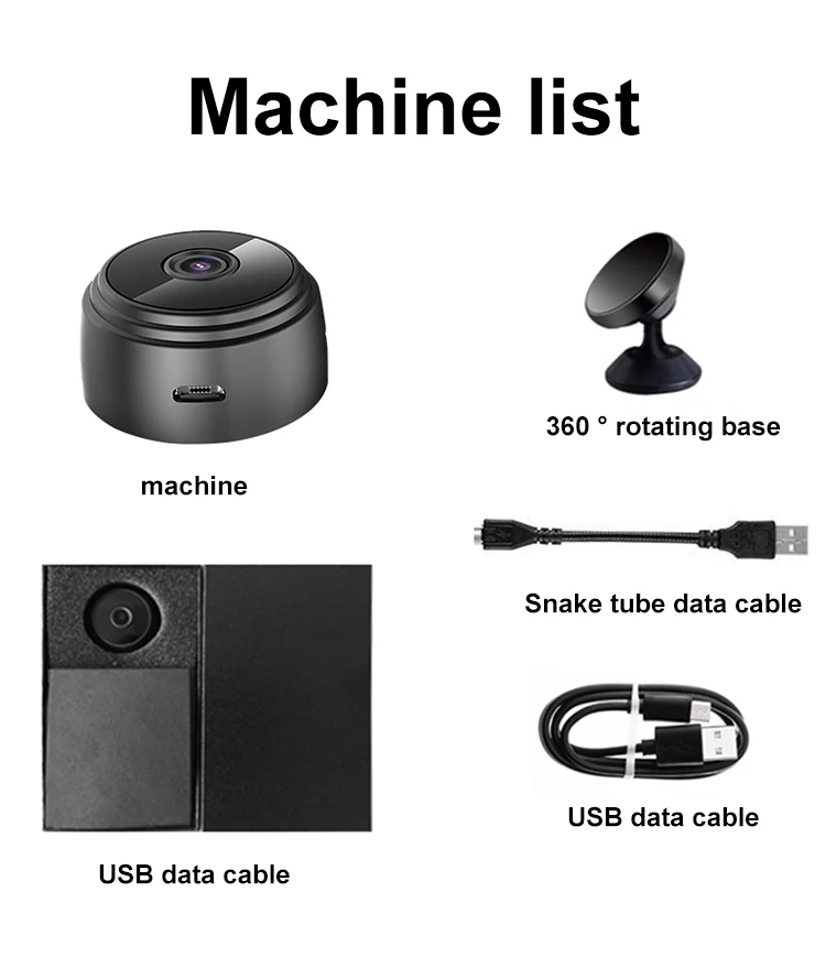Разрешение видео: 1080P Частота кадров: 25 кадров в секунду Угол обзора: 150 градусов Ночное видение: 0.5Lux Расстояние обнаружения движения камеры: 6 метров прямой Время работы батареи: 1 час Сжатый Формат: H.264 Диапазон записи: 5 квадратных метров Объем хранения: до 128 г Система поддержки: android/IOS Мощность Потребляемая мощность: 240MA/3,7 V Обнаружение движения: Поддержка Интерфейс: Micro 5PIN USB Напряжение зарядки: DC-5V Размер: 4,4*4*2,4 см