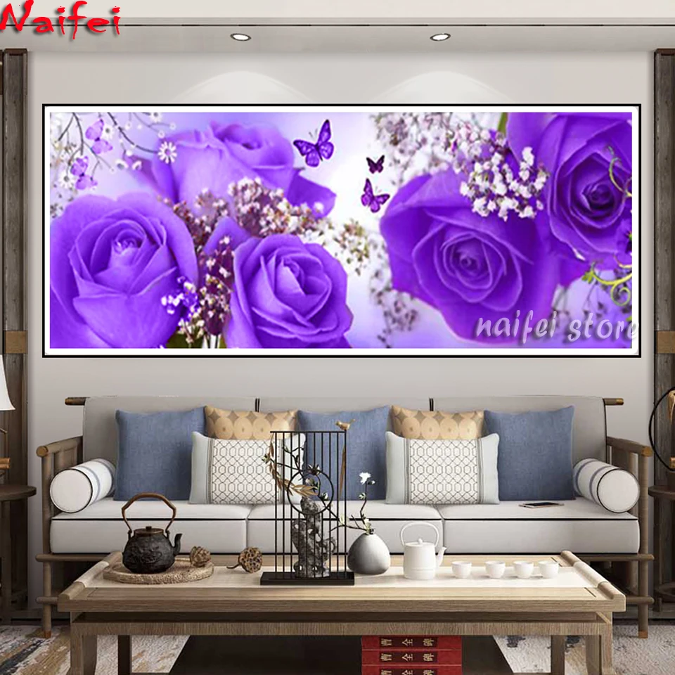 Синяя фиолетовая Роза 5D большая Алмазная картина дрель квадратный Современный абстрактный цветок 5D алмазная вышивка Стразы картина мозаика
