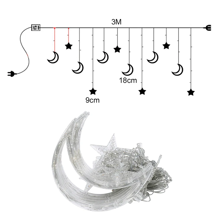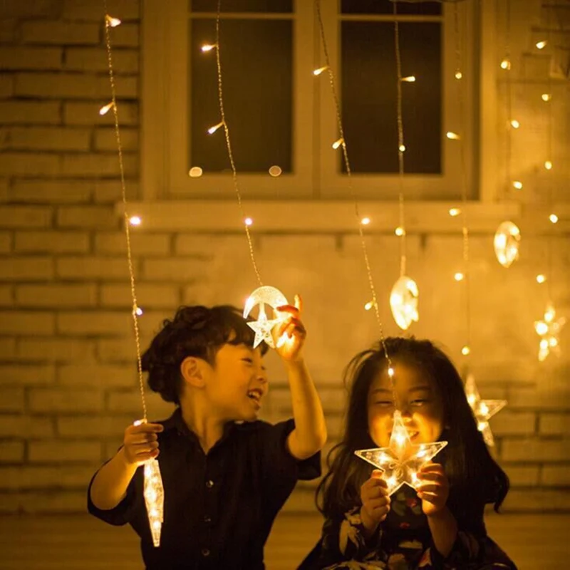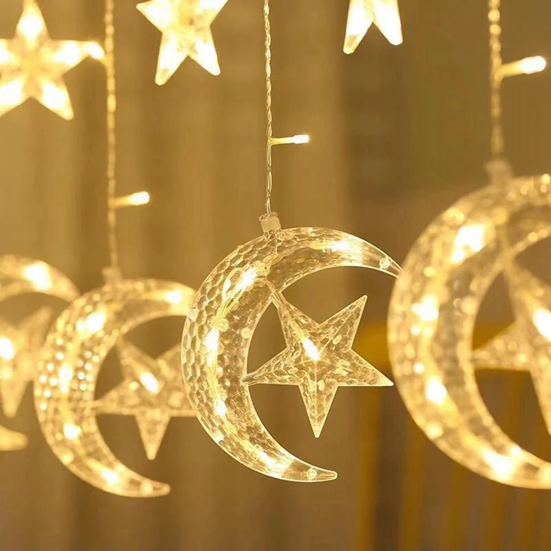 СВЕТОДИОДНАЯ Гирлянда-занавес в виде звезды, Луны, ИД Мубарак, украшения на Рамадан, ислам, мусульманский декор для вечерние, ИД-аль-Адха, подарок, ИД-Мубарак