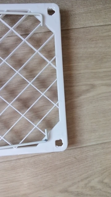 Полка не жесткая, под стопкой тарелок будет сильно прогибаться. Товар был упакован только в мягкий пакет, поэтому края немного погнулись.