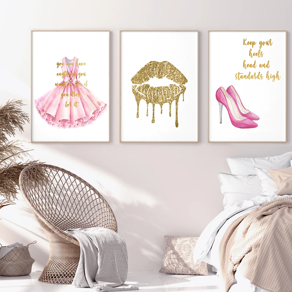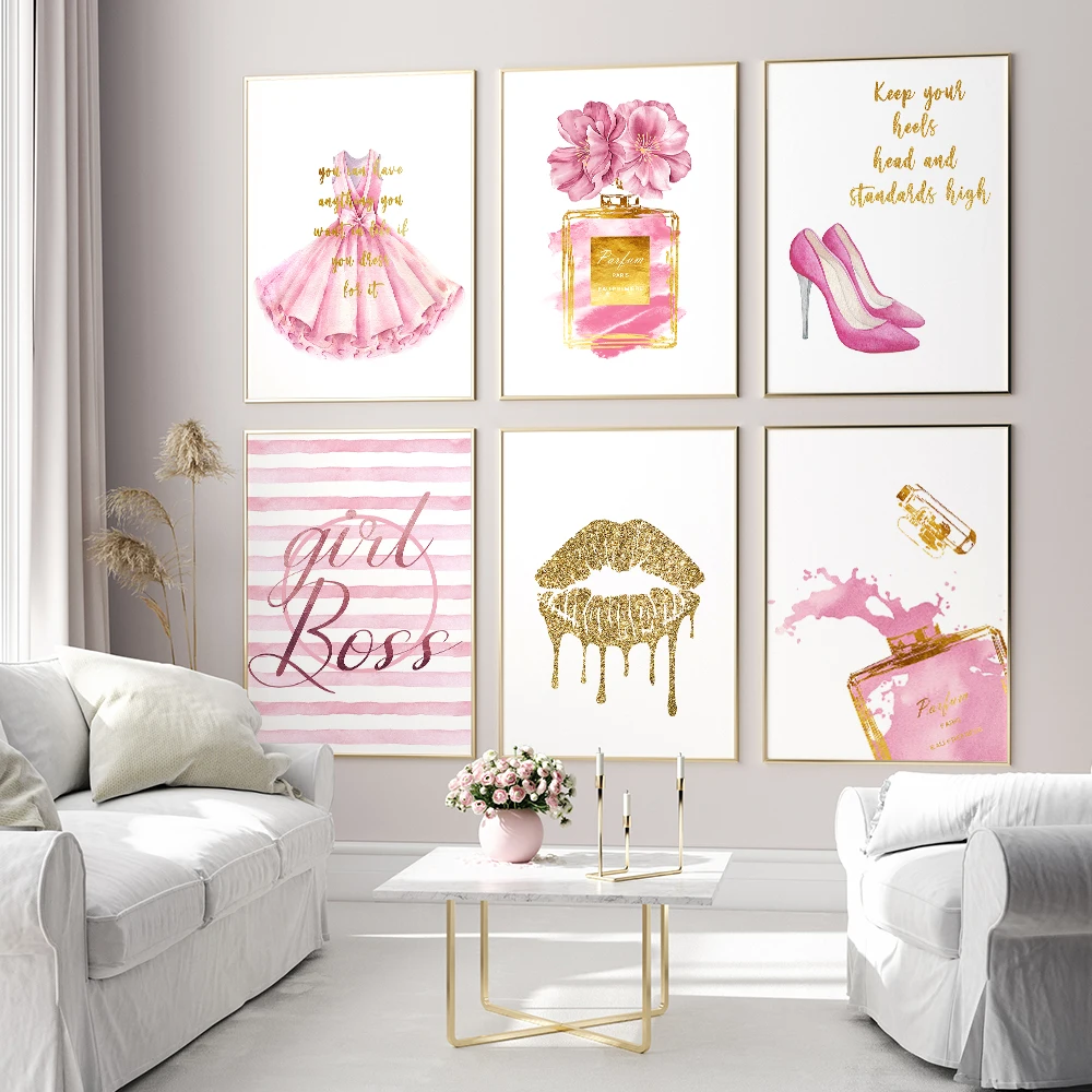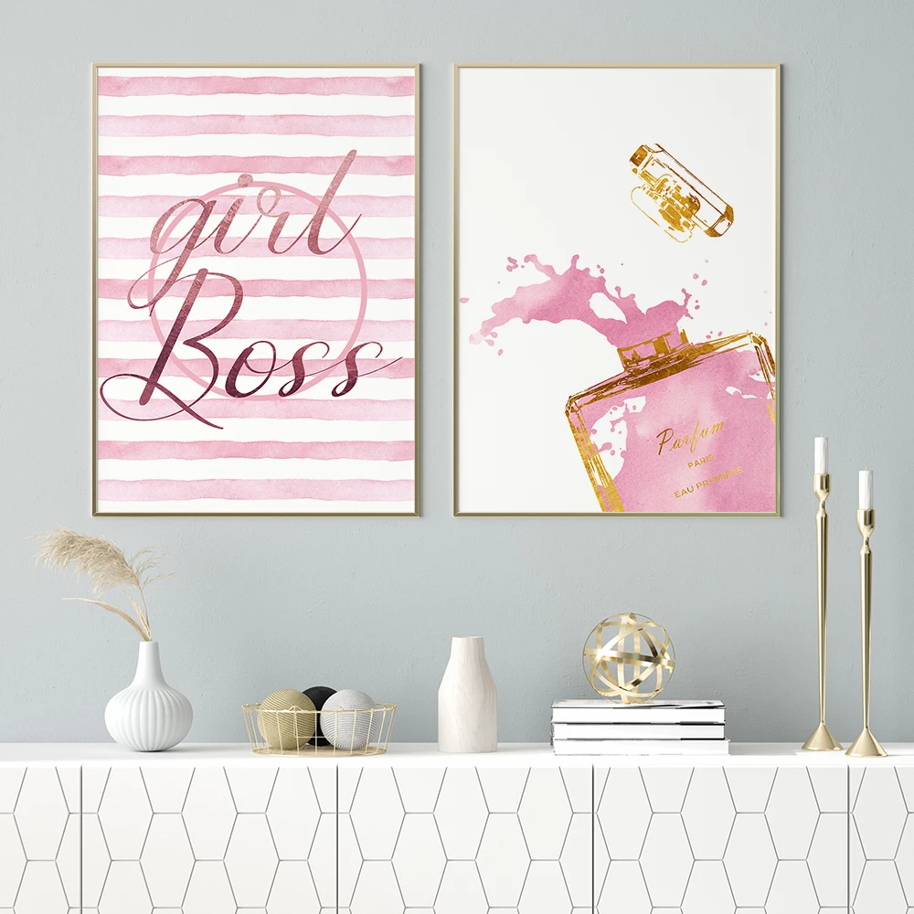 Постер Розовый Модный макияж парфюм подарок для девочки Декор для комнаты Печать на холсте настенные картины Домашний декор живопись современный абстрактный