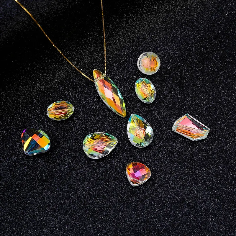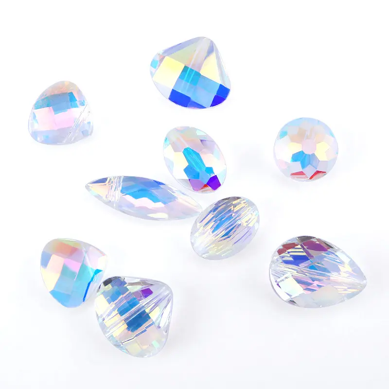 ❤Информация о товаре:10 шт./лот. Есть 7 форм кристаллов AB Подвески на выбор: форма груши, круглая форма, овальная форма, неправильная форма, форма маркизы, форма капли, Форма раковины. Размер отверстия около 1 мм, прямое отверстие.