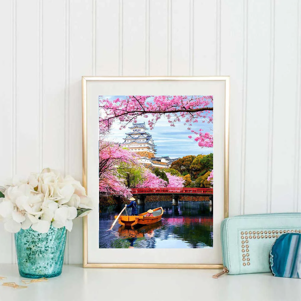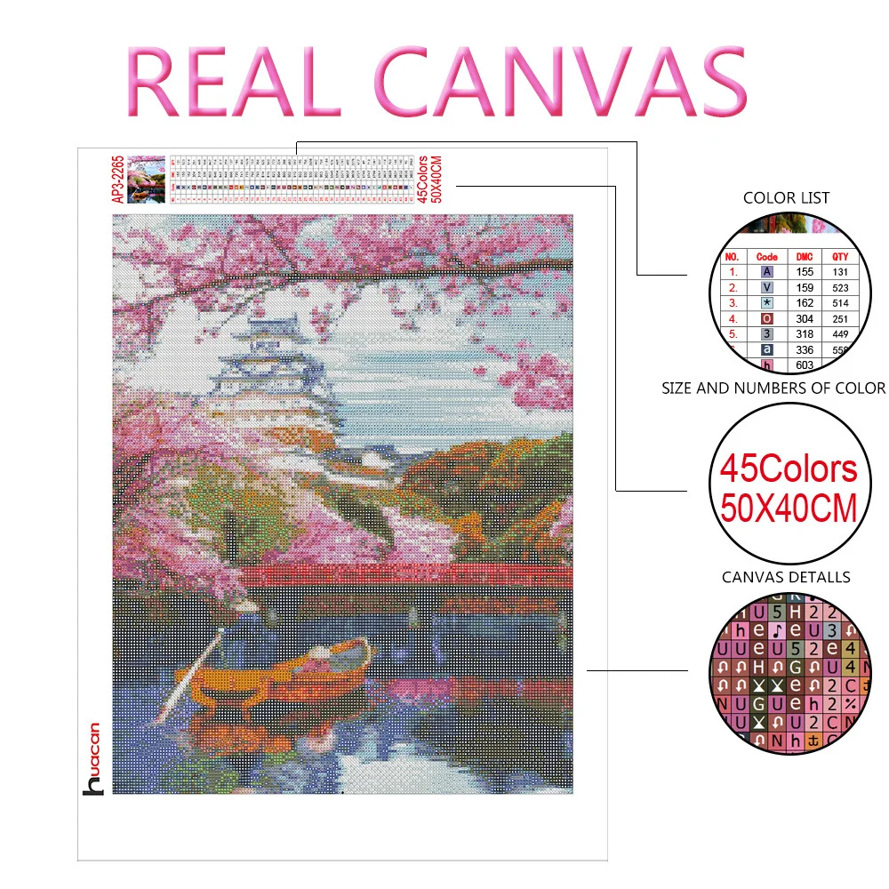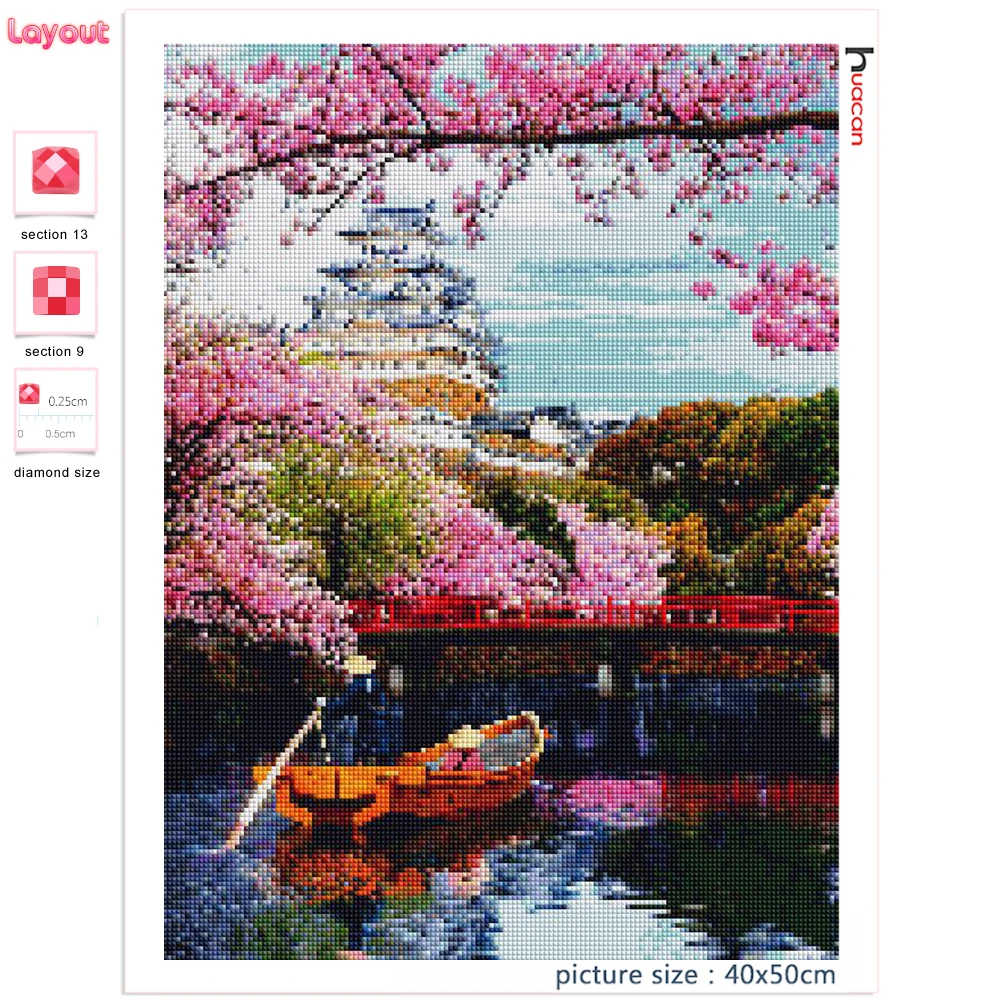 Алмазная живопись Huacan, полная выкладка, цветок, храм, вышивка пейзажа, вышивка крестиком, речной пейзаж, домашний декор, алмазная живопись