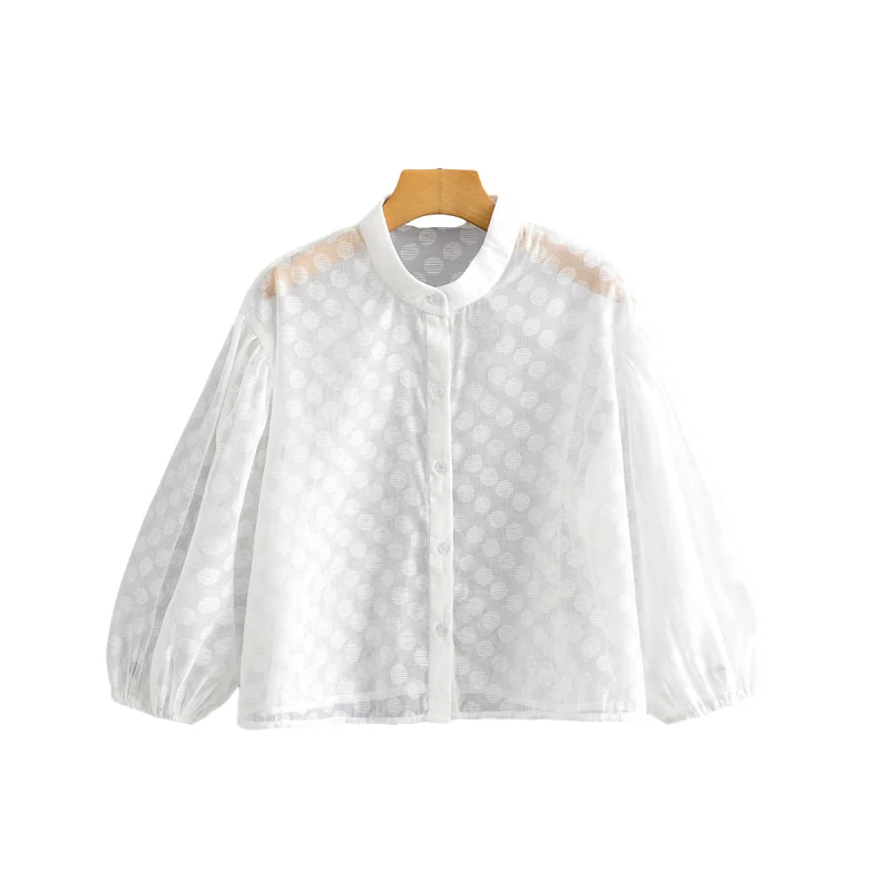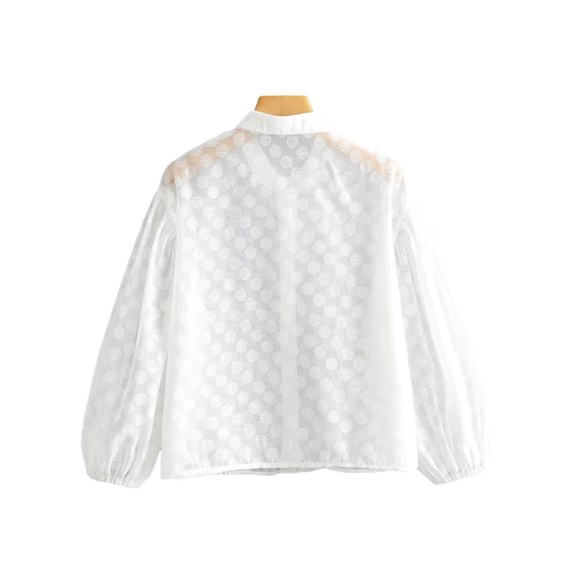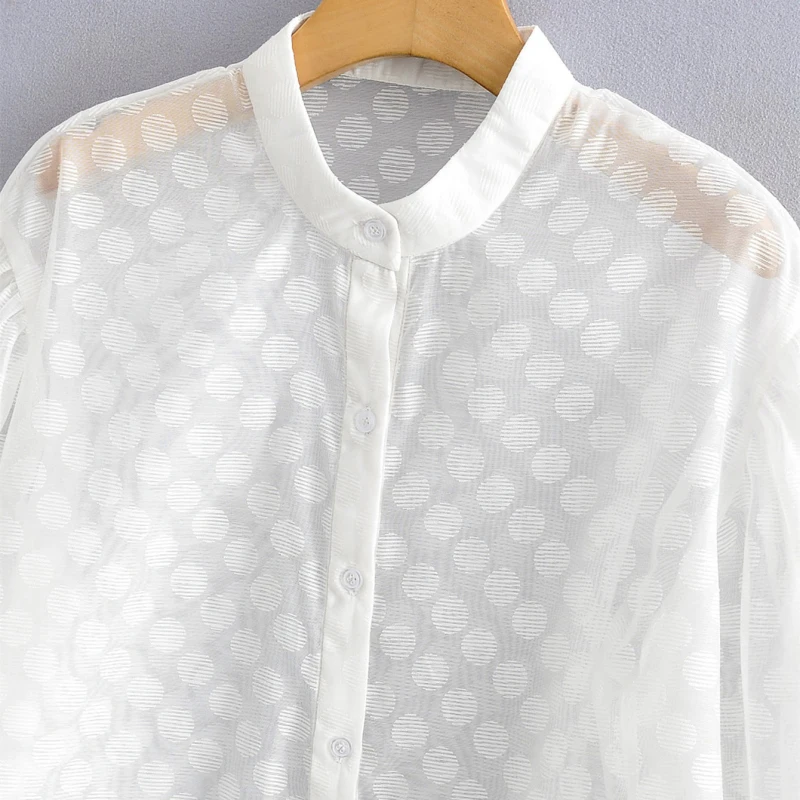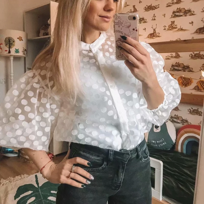 Повседневная Женская блузка PUWD в белый горошек, пикантная рубашки с буфами на рукавах, элегантная уличная одежда, весна 2021