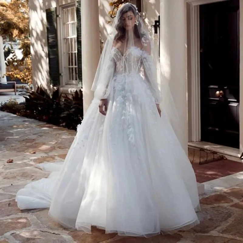Свадебное платье принцессы с открытыми плечами в стиле бохо, платье...