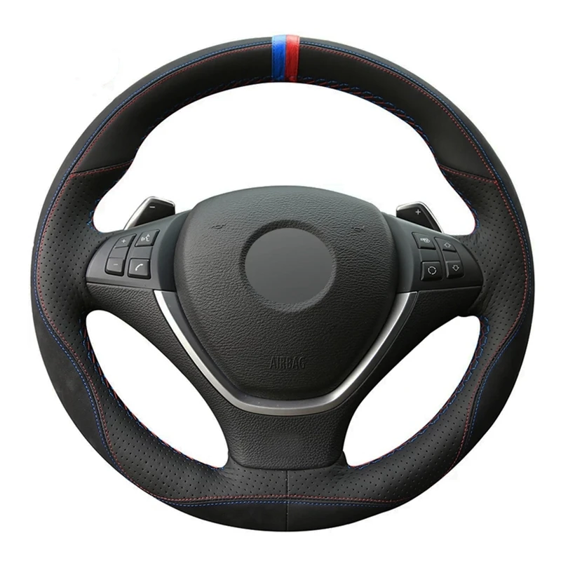 Чехол рулевого колеса автомобиля DIY Ручная строчка мягкая черная натуральная кожа замша для BMW X5 E70 2006-2013 X6 E71 E72 2008-2014