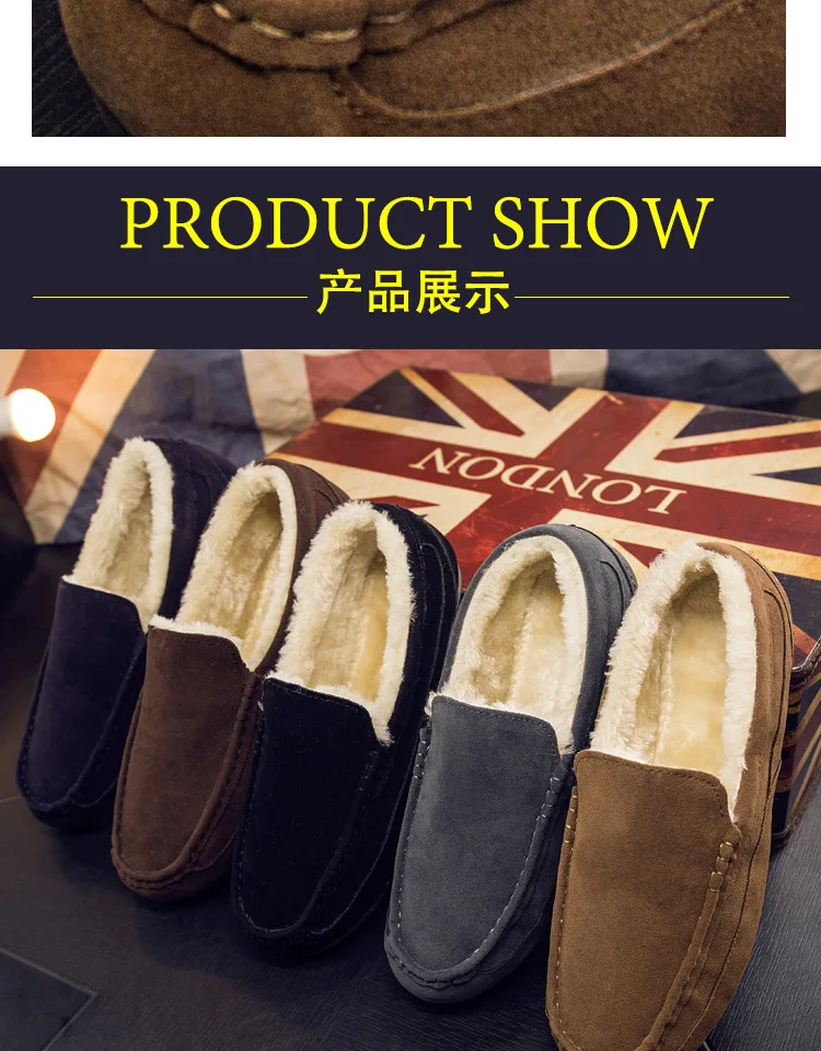 Кожаные мужские мокасины, зимние ботинки на плоской подошве