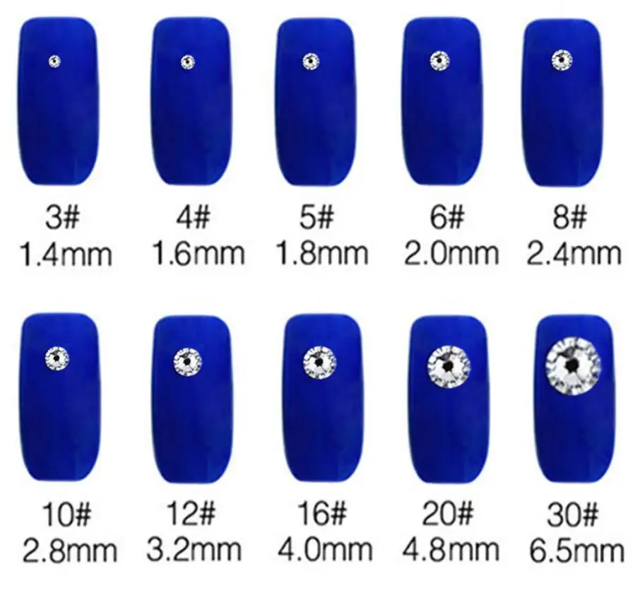 Размер камня, размер в мм граней, детали упаковки, вес неттоSs4 1,5-1,7 мм 8 1440 шт (10 брутто)/мешок 6,8 гSs5 1,7-1,9 мм 8 1440 шт (10 брутто)/Сумка 8,2 гSs6 1,9-2,1 мм 8 1440 шт (10 брутто)/мешок 10,2 гSs8 2,3-2,5 мм 8 1440 шт (10 брутто)/Сумка 17,3 гSs10 2,7-2,9 мм 10 1440 шт (10 брутто)/мешок 20,6 гSs12 3,0-3,2 мм 10 1440 шт (10 брутто)/мешок 36,1 гSs16 3,8-4,0 мм 12 1440 шт (10 брутто)/мешок 55,8 гSs20 4,8-5,0 мм 14 1440 шт (10 брутто)/мешок 89,3 гSs30 6,3-6,5 мм 16 288 шт (2 брутто)/мешок 65,5 гSs34 7,0-7,2 мм 18 288 шт (2 брутто)/мешок 38,7 гSs40 8,35-8,65 мм 20 144 шт (1 Брутто)/мешок 71,4 г