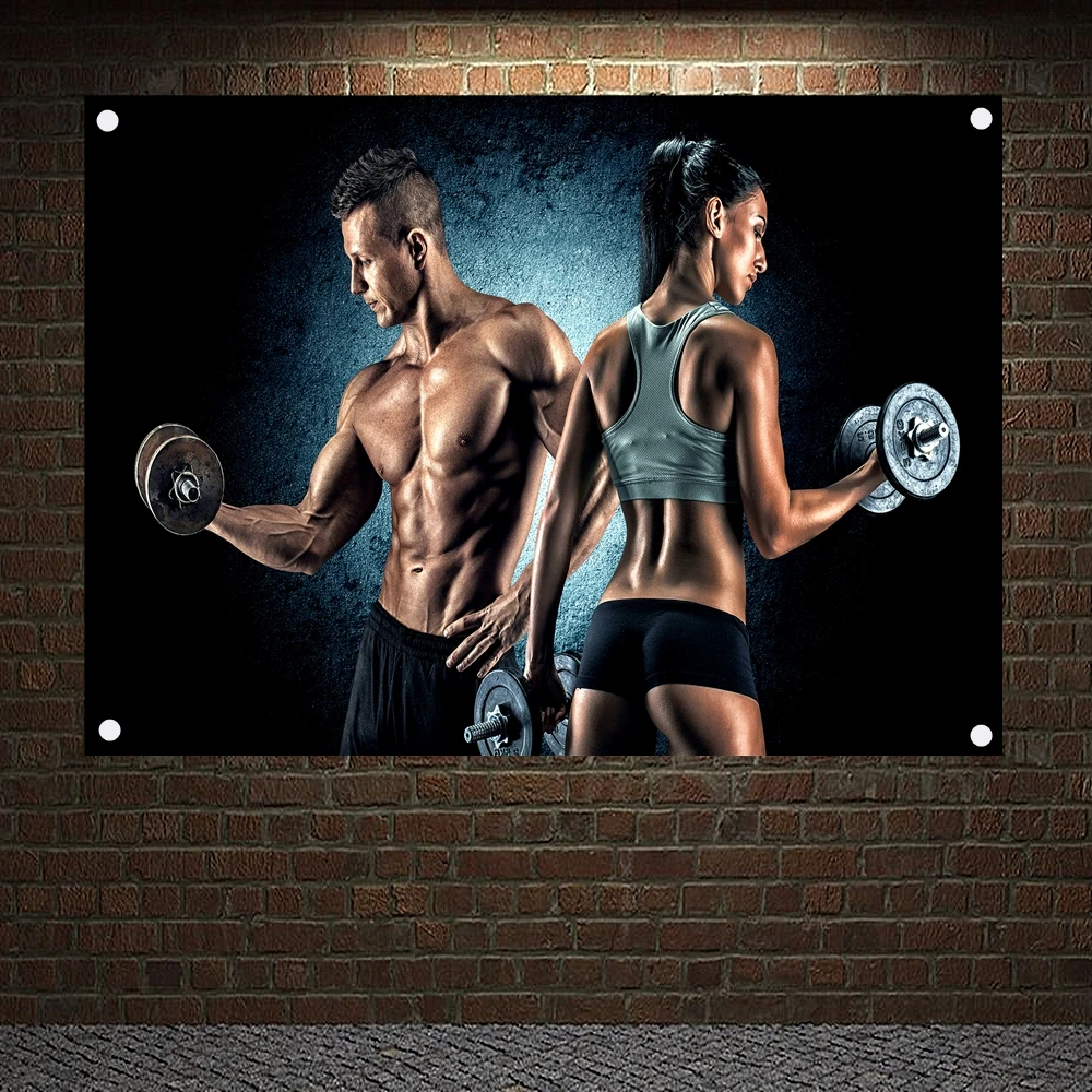 Для фитнеса, для пары, мотивационные фотообои, бодибилдинг, фитнес-баннеры, флаги, настенное искусство, фотообои на холсте