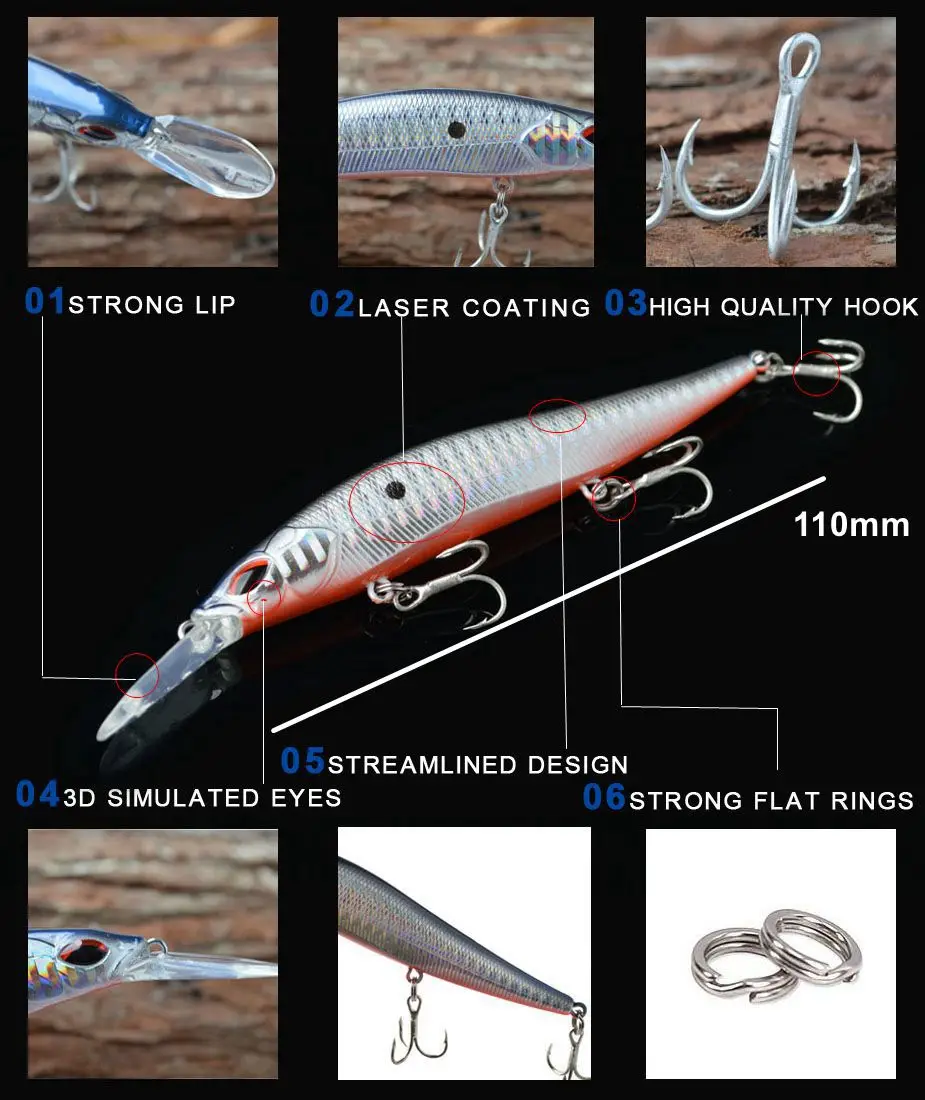 Блесна для ловли рыбы Minnow, приманки для ловли рыбы, плавающие воблеры, 110 мм, 15 г, приманка для длинного литья, искусственная жесткая наживка