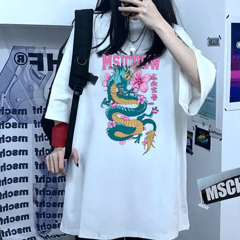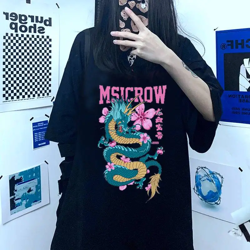 Женская Винтажная Футболка Ulzzang Harajuku с принтом китайского др...