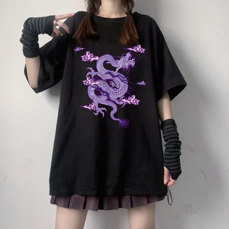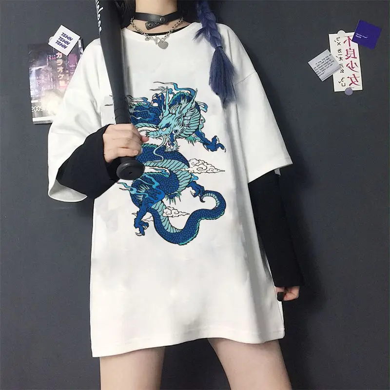 Женская Винтажная футболка, с принтом дракона, большого размера